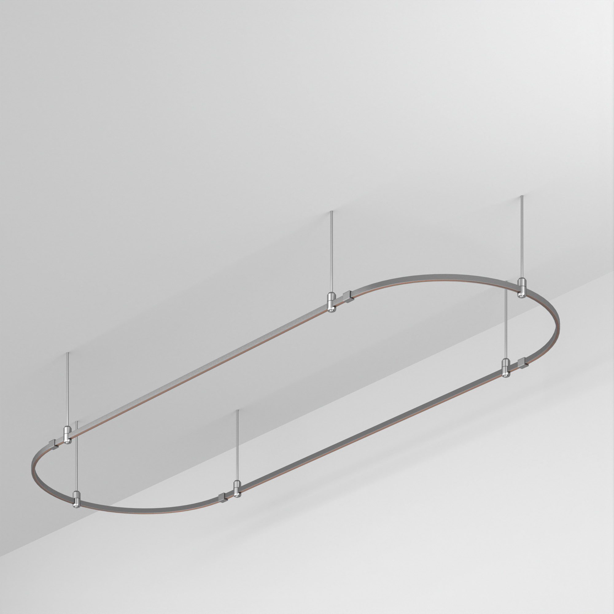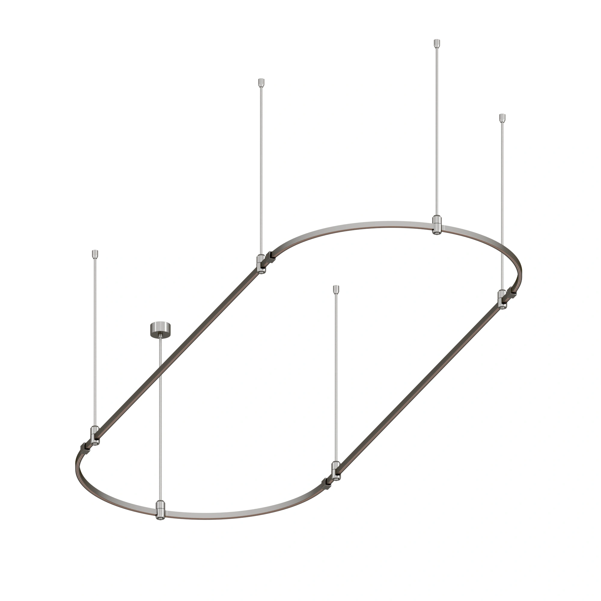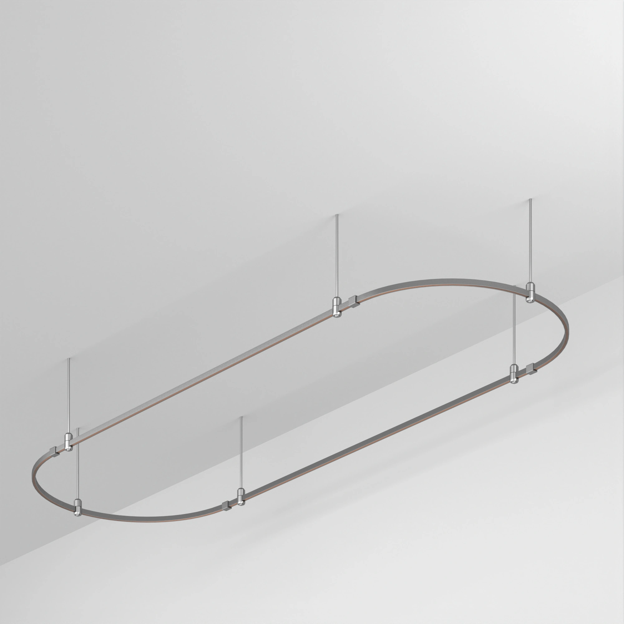 Подвесная конструкция APRIORI, форма овал. В комплекте треки с аксессуарами и жесткими подвесами длиной 800мм. Размер ДxШxВ: 3000x1000x22мм. Монтируется подвесным способом. Шинопровод рассчитан на работу с безопасным напряжением DC48В. Изготавливается из алюминия, анодированного в цвет титан. Светильники и источники питания приобретаются отдельно.