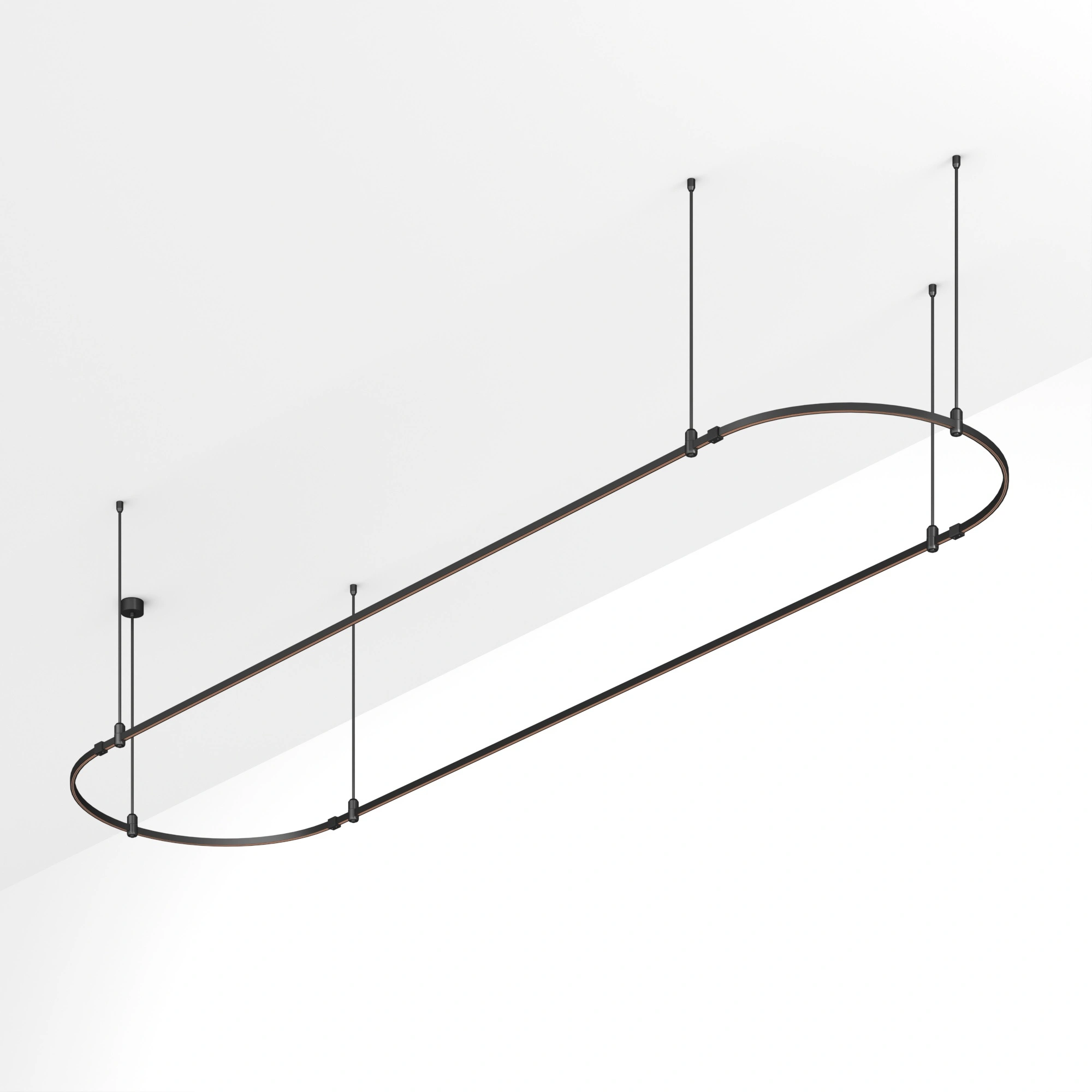 Подвесная конструкция APRIORI, форма овал. В комплекте треки с аксессуарами и жесткими подвесами длиной 800мм. Размер ДxШxВ: 4000x1000x22мм. Монтируется подвесным способом. Шинопровод рассчитан на работу с безопасным напряжением DC48В. Изготавливается из алюминия, цвет черный. Светильники и источники питания приобретаются отдельно.