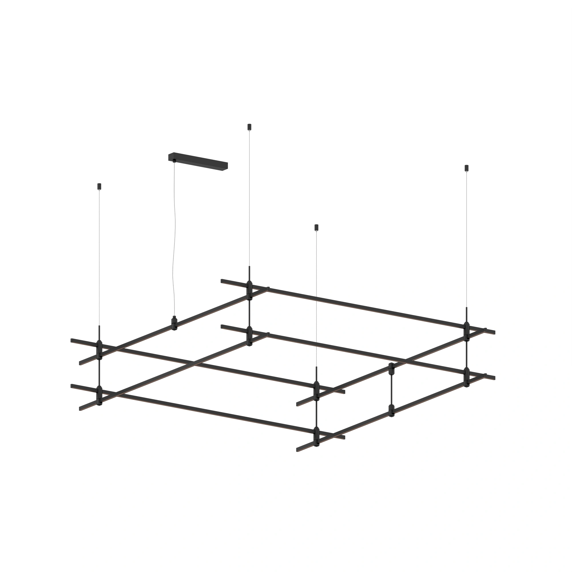 Подвесная конструкция APRIORI, форма квадрат-2. В комплекте треки с аксессуарами и гибкими подвесами длиной 1500мм Размер ДxШxВ: 2000x2000x300мм. Монтируется подвесным способом. Шинопровод рассчитан на работу с безопасным напряжением DC48В. Изготавливается из алюминия, цвет черный. Светильники и источники питания приобретаются отдельно.