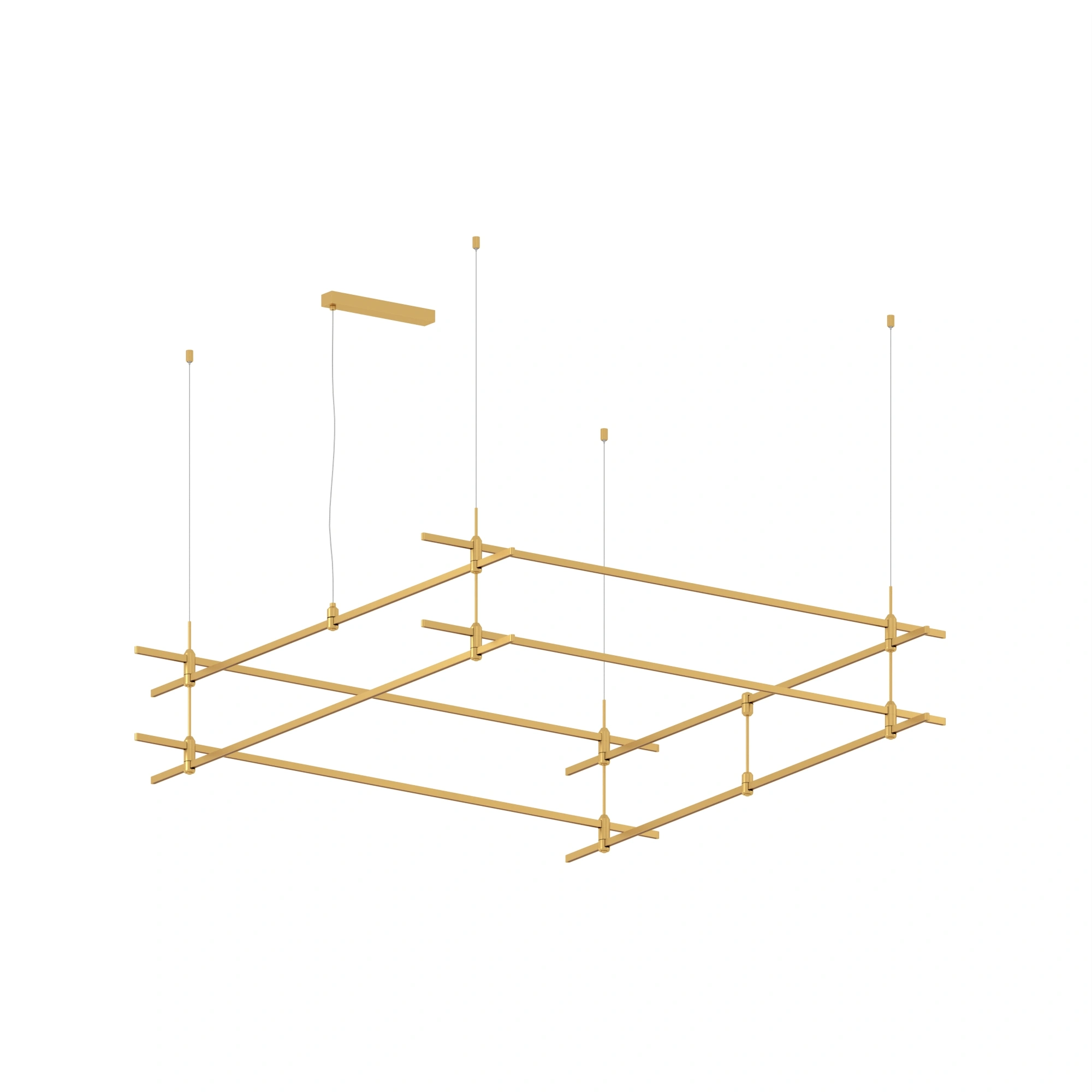 Подвесная конструкция APRIORI, форма квадрат-2. В комплекте треки с аксессуарами и гибкими подвесами длиной 1500мм Размер ДxШxВ: 2000x2000x300мм. Монтируется подвесным способом. Шинопровод рассчитан на работу с безопасным напряжением DC48В. Изготавливается из алюминия, анодированного в цвет светлое золото. Светильники и источники питания приобретаются отдельно.