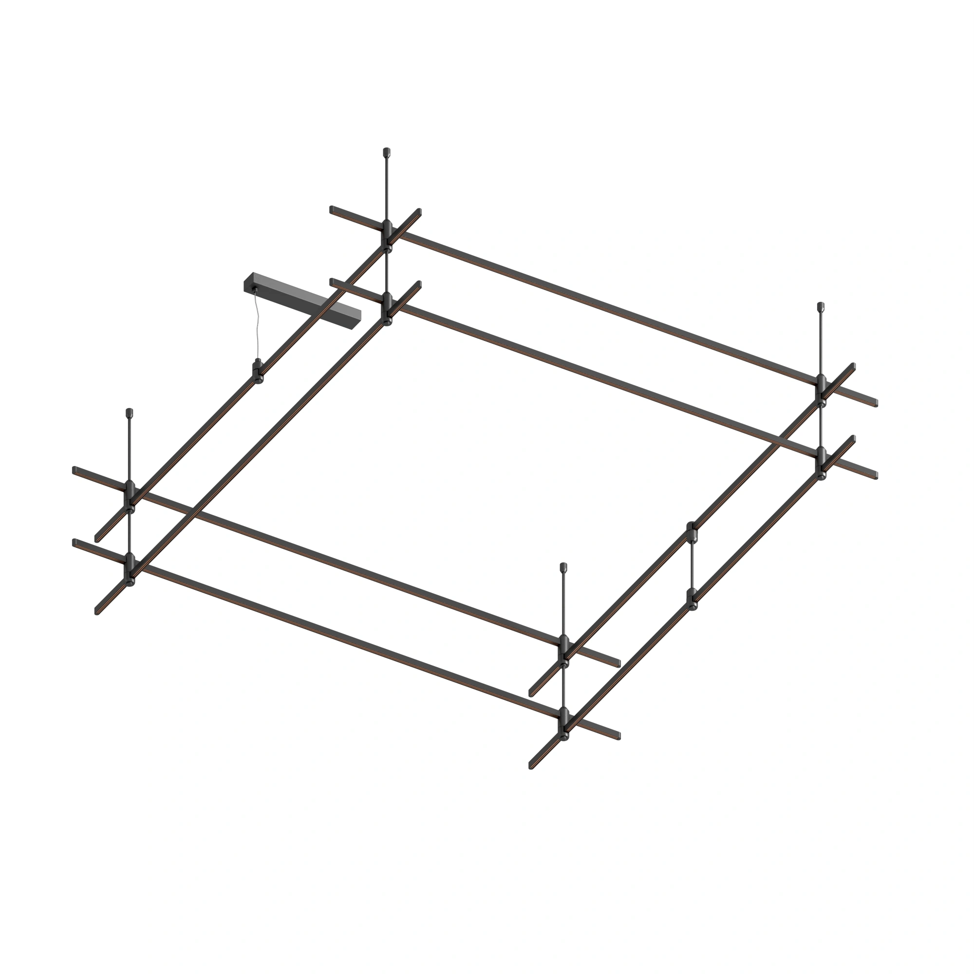 Подвесная конструкция APRIORI, форма квадрат-2. В комплекте треки с аксессуарами и жёсткими подвесами длиной 400мм Размер ДxШxВ: 2000x2000x300мм. Монтируется подвесным способом. Шинопровод рассчитан на работу с безопасным напряжением DC48В. Изготавливается из алюминия, цвет черный. Светильники и источники питания приобретаются отдельно.