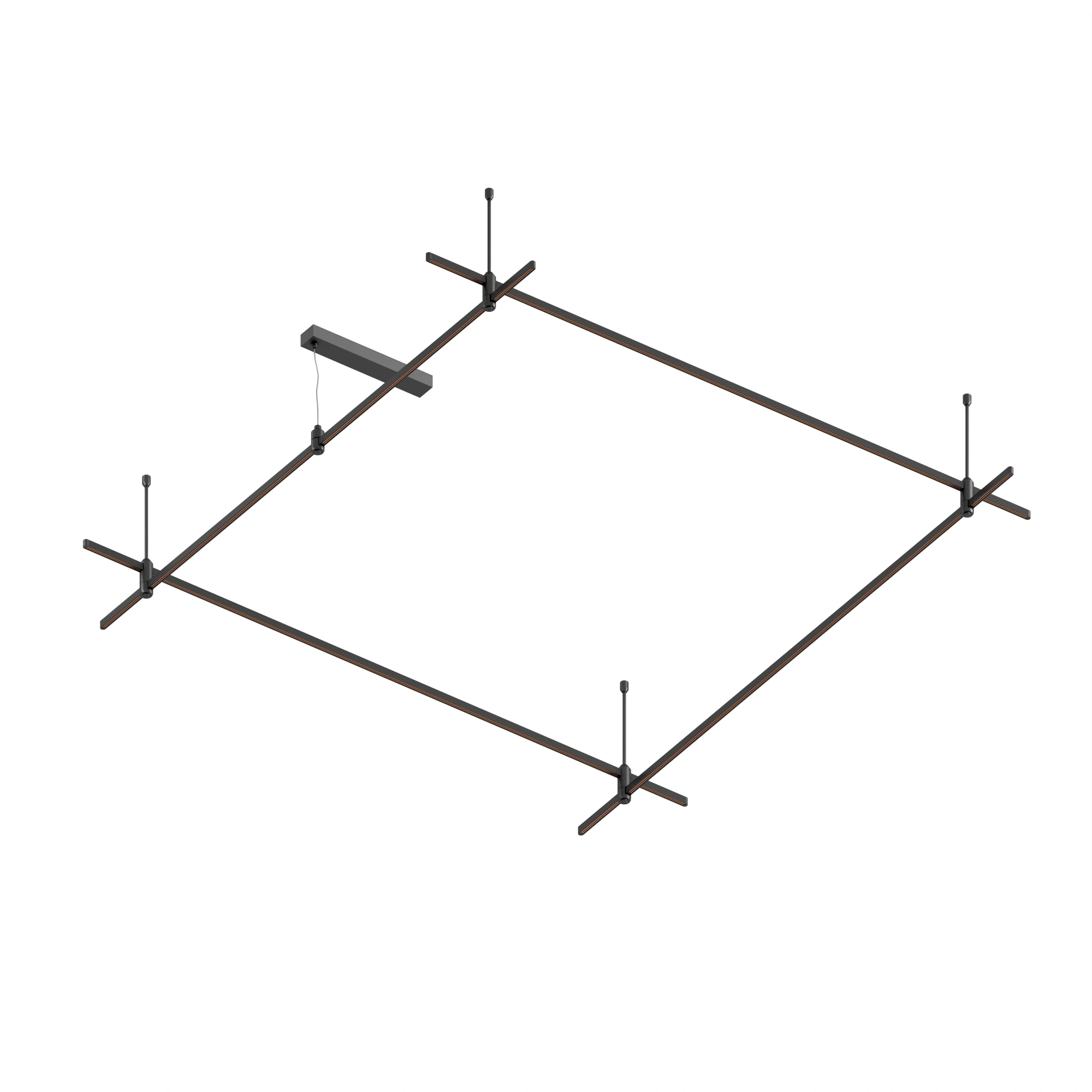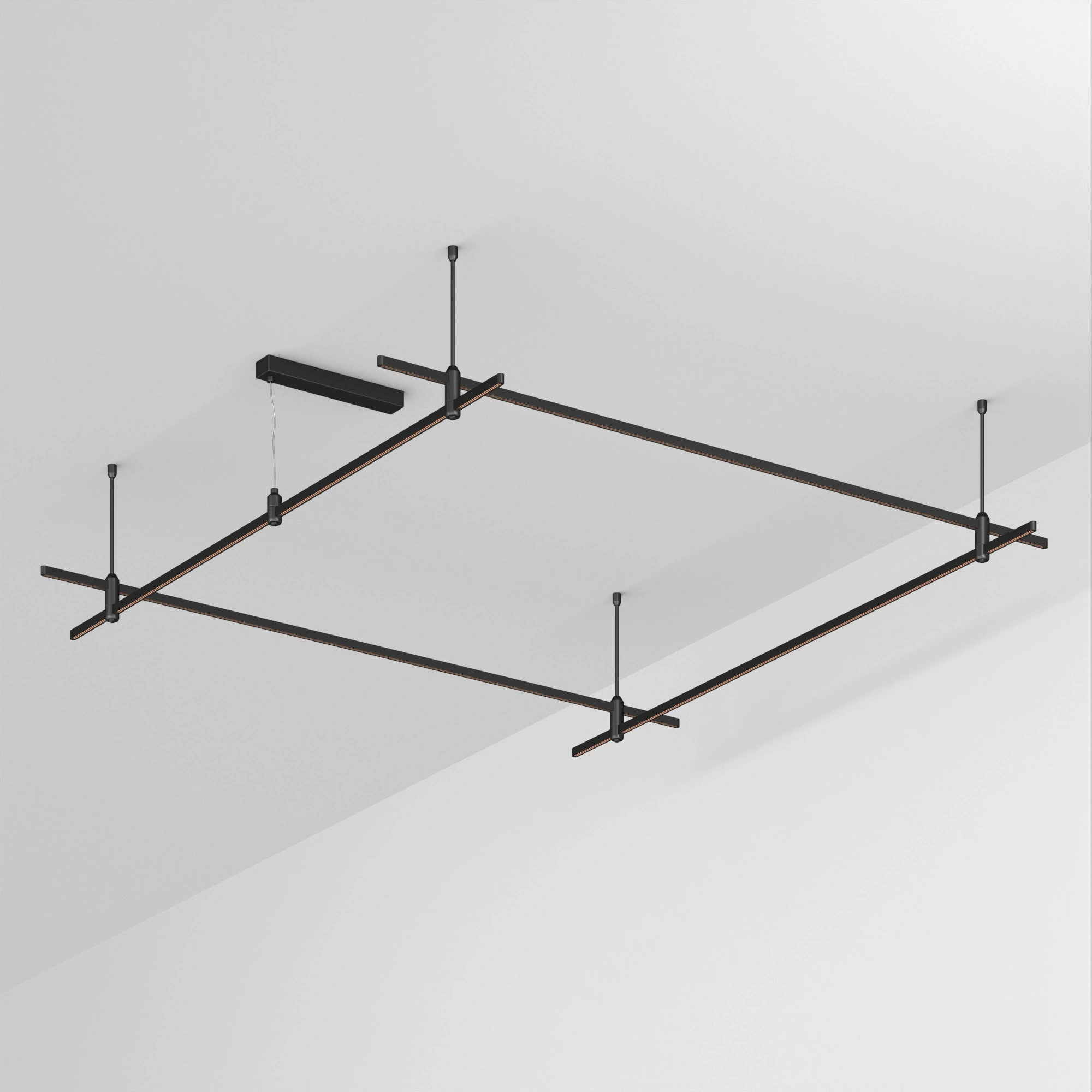 Подвесная конструкция APRIORI, форма квадрат. В комплекте треки с аксессуарами и жесткими подвесами длиной 400мм Размер ДxШxВ: 2000x2000x22мм. Монтируется подвесным способом. Шинопровод рассчитан на работу с безопасным напряжением DC48В. Изготавливается из алюминия, цвет черный. Светильники и источники питания приобретаются отдельно.