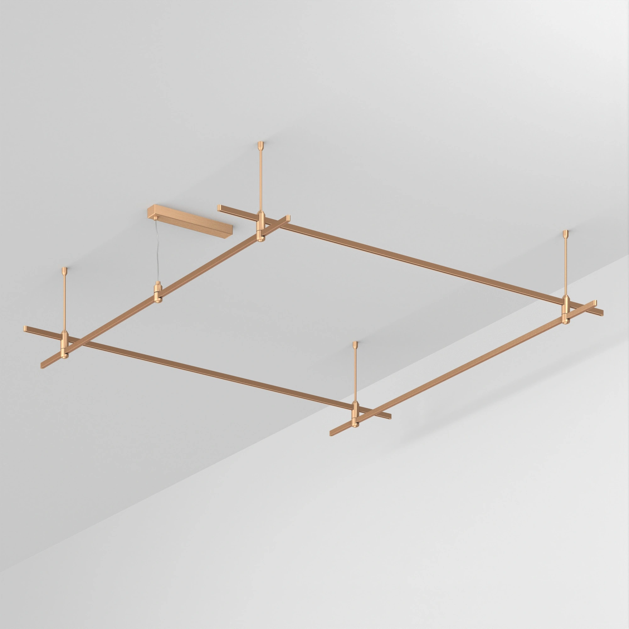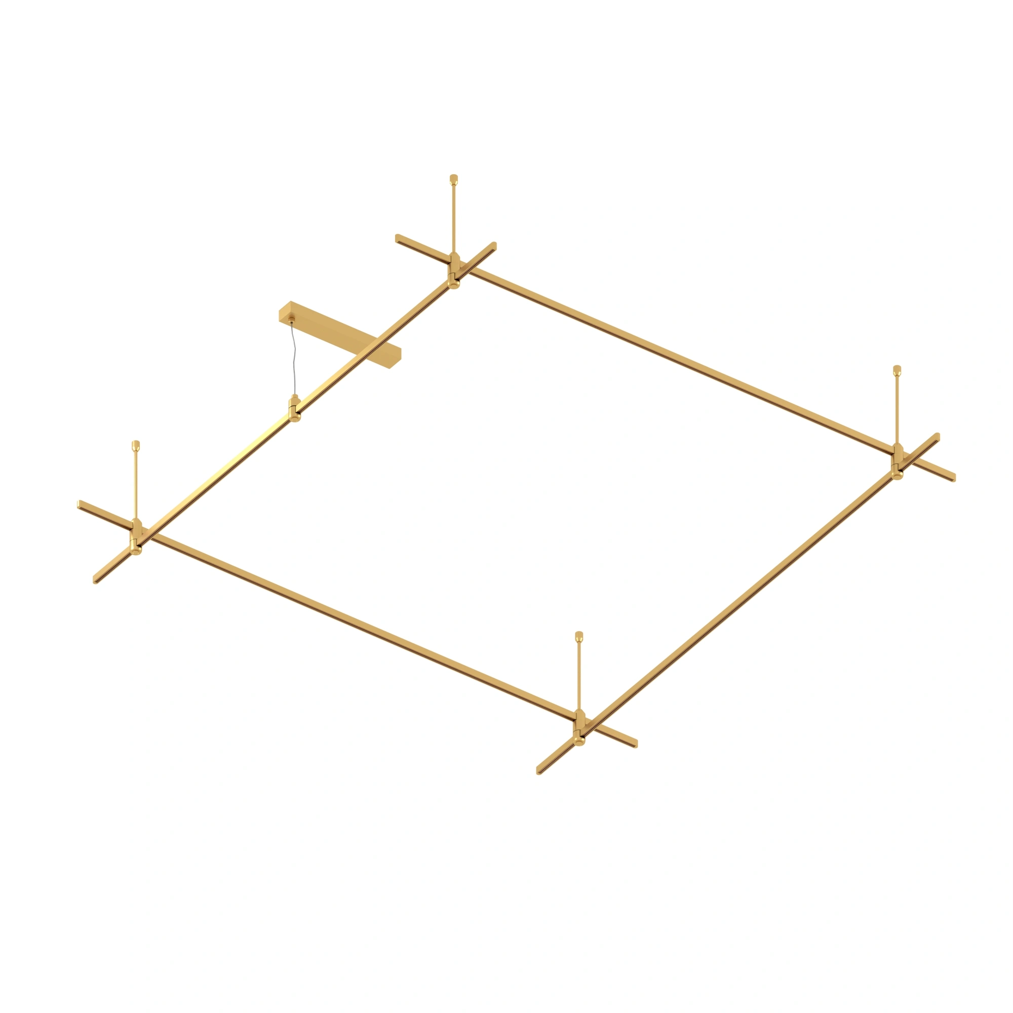 Подвесная конструкция APRIORI, форма квадрат. В комплекте треки с аксессуарами и жесткими подвесами длиной 400мм Размер ДxШxВ: 2000x2000x22мм. Монтируется подвесным способом. Шинопровод рассчитан на работу с безопасным напряжением DC48В. Изготавливается из алюминия, анодированного в цвет светлое золото. Светильники и источники питания приобретаются отдельно.