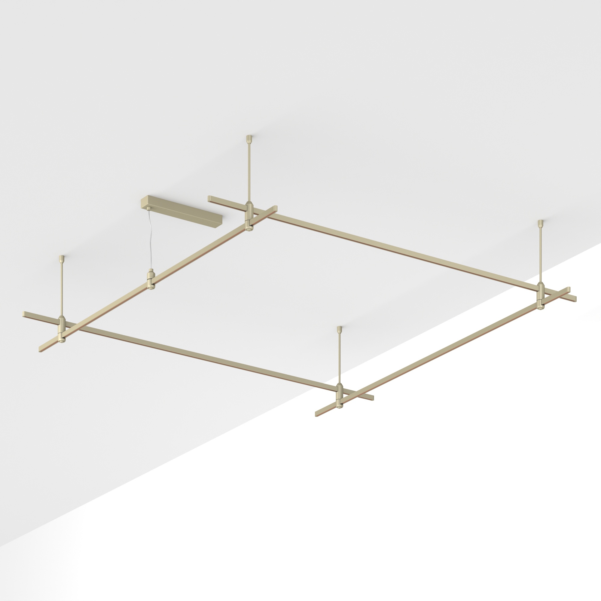 Подвесная конструкция APRIORI, форма квадрат. В комплекте треки с аксессуарами и жесткими подвесами длиной 400мм Размер ДxШxВ: 2000x2000x22мм. Монтируется подвесным способом. Шинопровод рассчитан на работу с безопасным напряжением DC48В. Изготавливается из алюминия, анодированного в цвет серо-оливковый. Светильники и источники питания приобретаются отдельно.