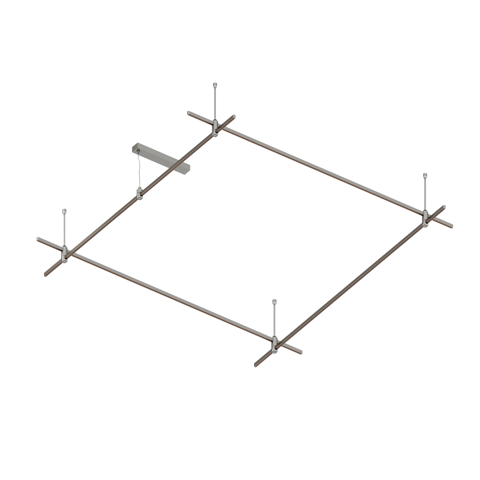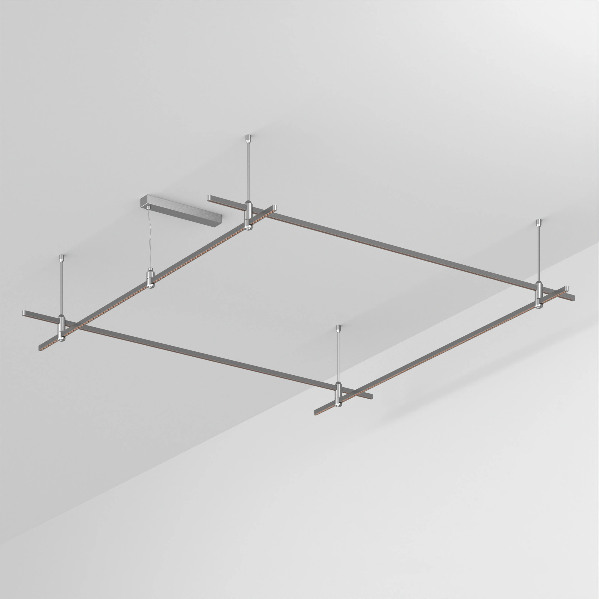Подвесная конструкция APRIORI, форма квадрат. В комплекте треки с аксессуарами и жесткими подвесами длиной 400мм Размер ДxШxВ: 2000x2000x22мм. Монтируется подвесным способом. Шинопровод рассчитан на работу с безопасным напряжением DC48В. Изготавливается из алюминия, анодированного в цвет титан. Светильники и источники питания приобретаются отдельно.