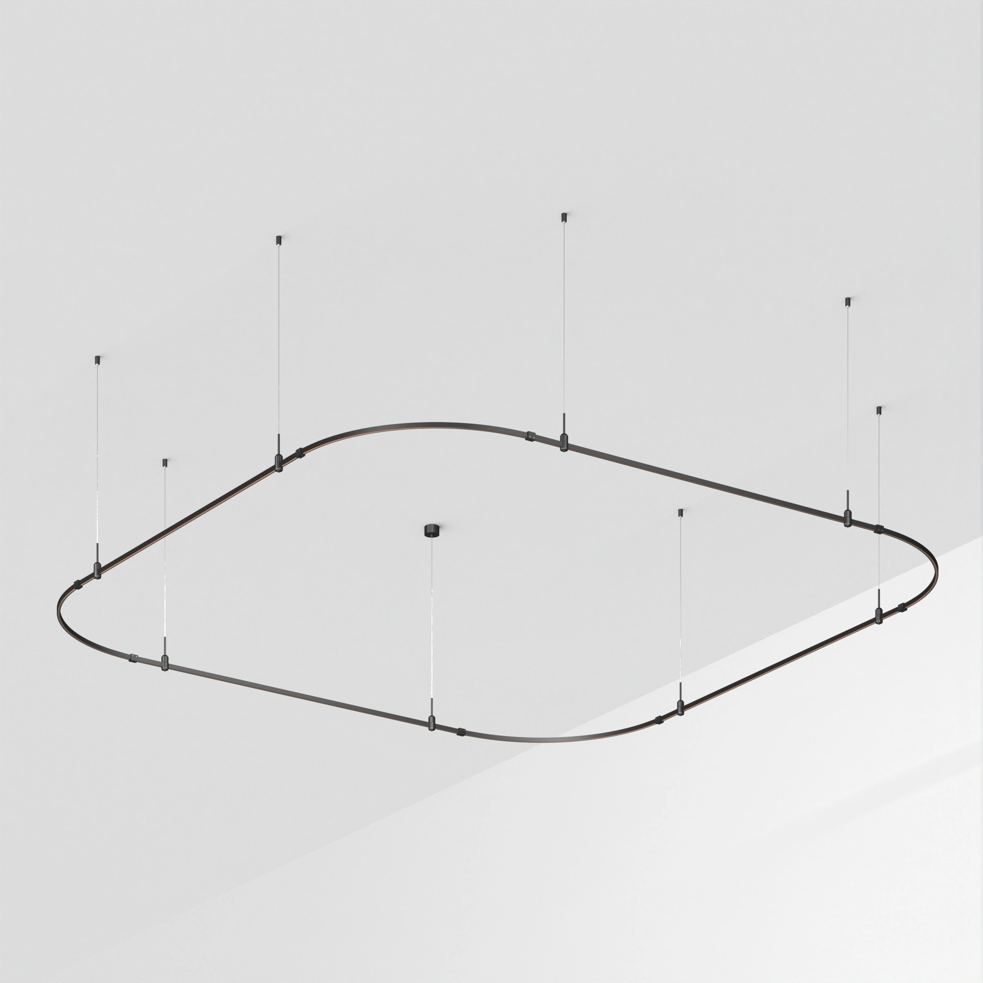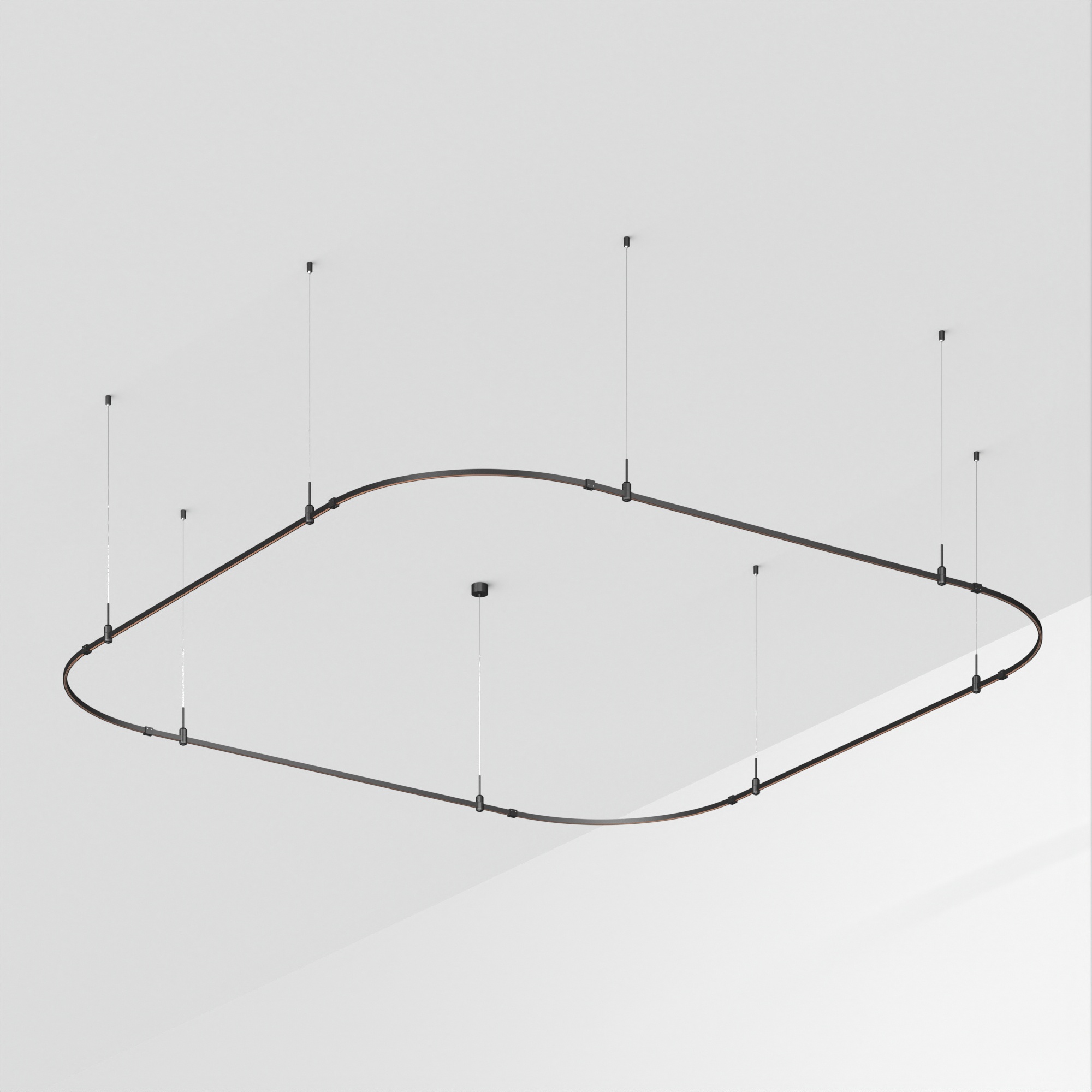 Подвесная конструкция APRIORI, форма мягкий квадрат. В комплекте треки с аксессуарами и гибкими подвесами длиной 1500мм Размер ДxШxВ: 3500x3500x22мм. Монтируется подвесным способом. Шинопровод рассчитан на работу с безопасным напряжением DC48В. Изготавливается из алюминия, цвет черный Светильники и источники питания приобретаются отдельно.