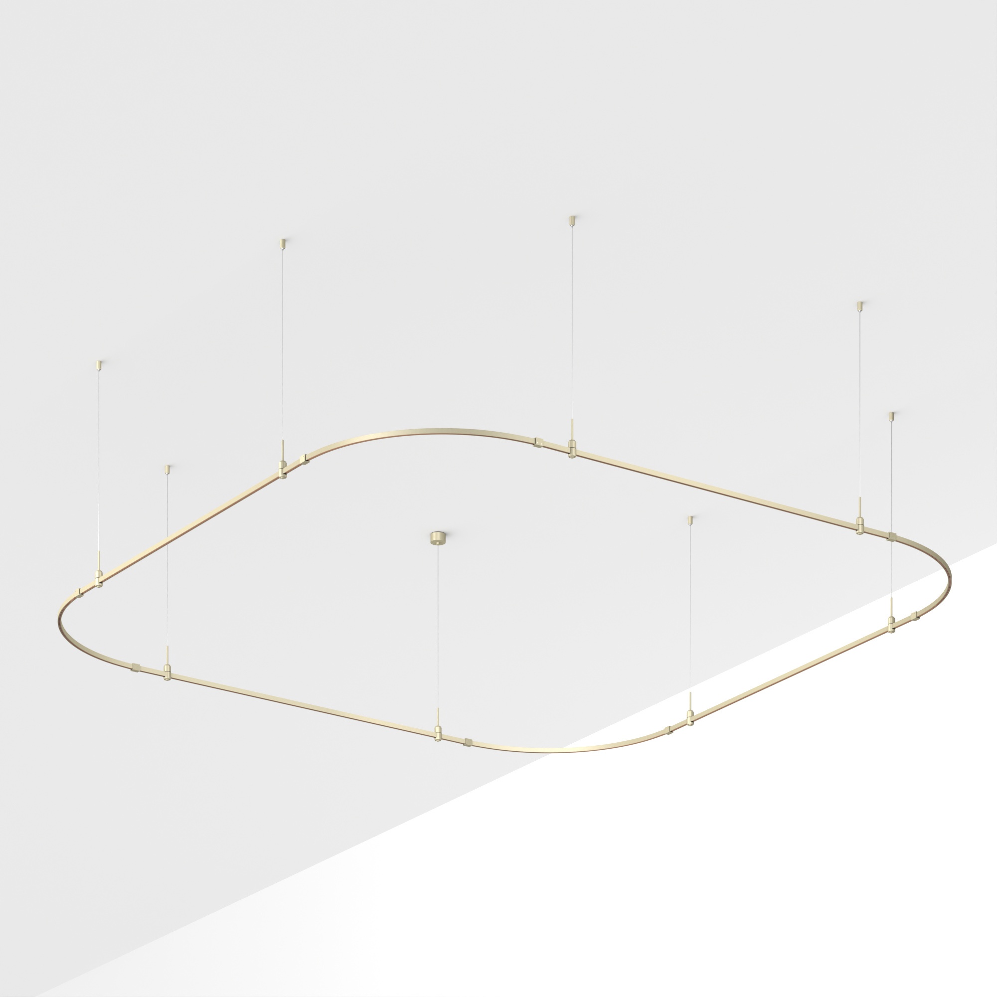 Подвесная конструкция APRIORI, форма мягкий квадрат. В комплекте треки с аксессуарами и гибкими подвесами длиной 1500мм Размер ДxШxВ: 3500x3500x22мм. Монтируется подвесным способом. Шинопровод рассчитан на работу с безопасным напряжением DC48В. Изготавливается из алюминия, анодированного в цвет серо-оливковый. Светильники и источники питания приобретаются отдельно.