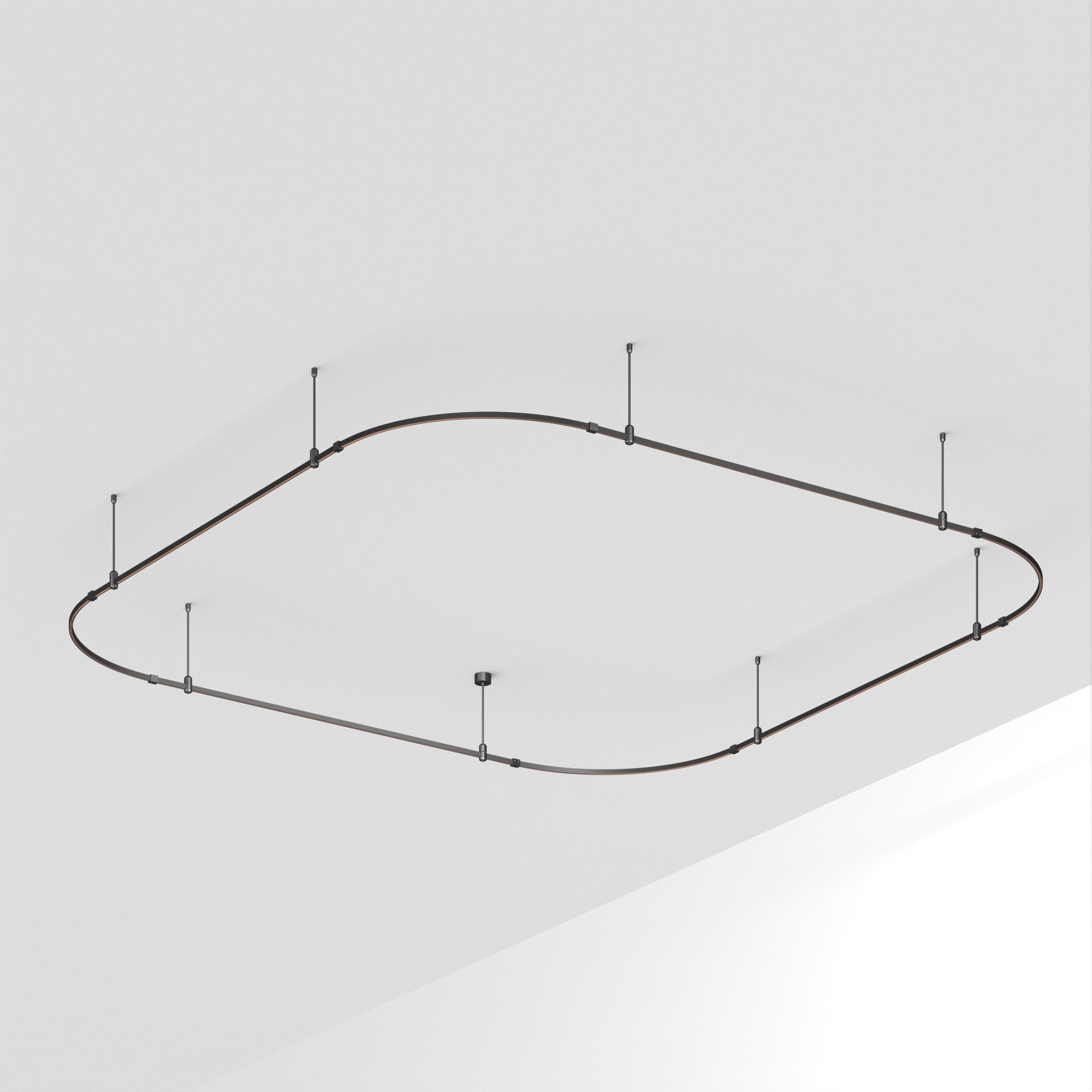 Подвесная конструкция APRIORI, форма мягкий квадрат. В комплекте треки с аксессуарами и жесткими подвесами длиной 400мм Размер ДxШxВ: 3500x3500x22мм. Монтируется подвесным способом. Шинопровод рассчитан на работу с безопасным напряжением DC48В. Изготавливается из алюминия, цвет черный Светильники и источники питания приобретаются отдельно.