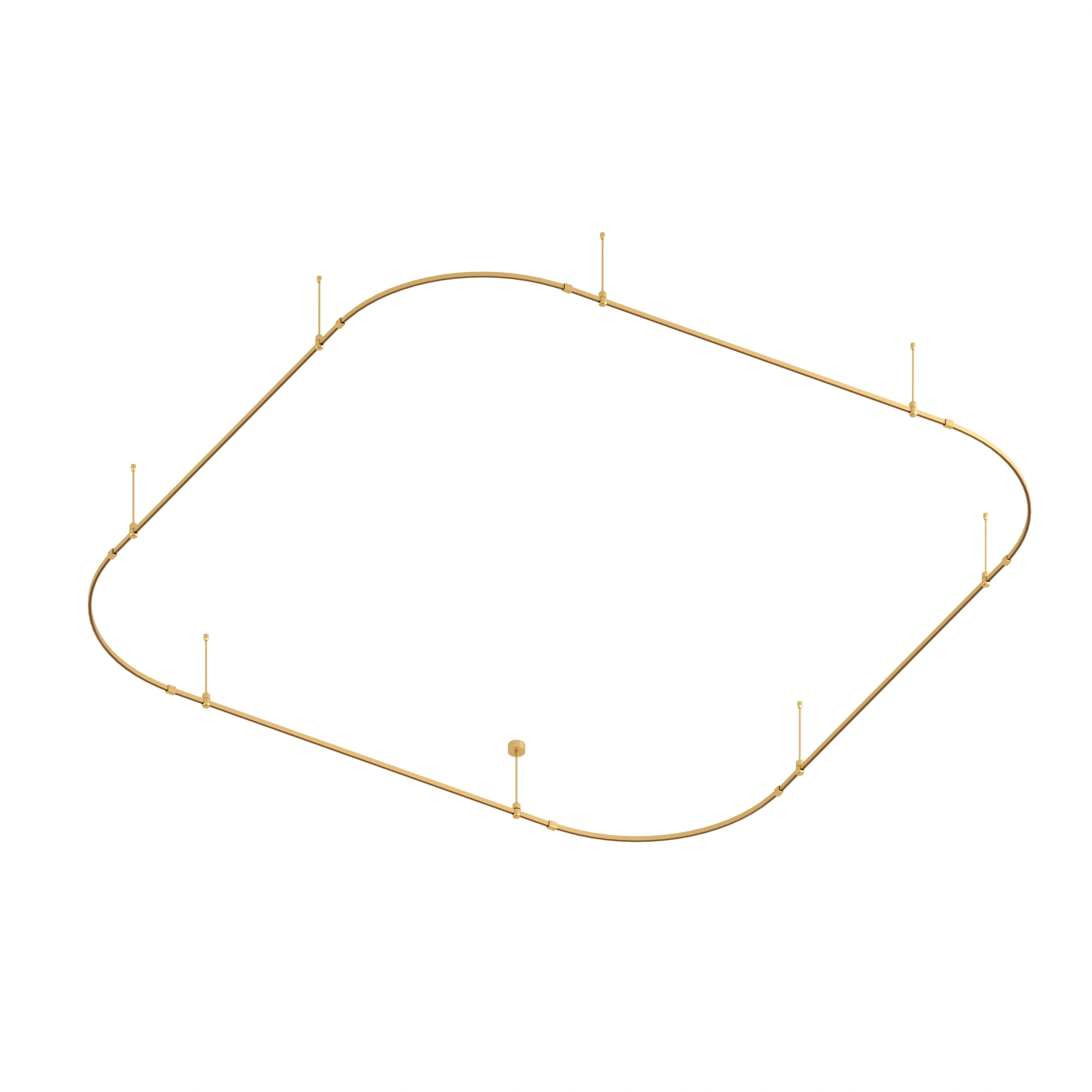 Подвесная конструкция APRIORI, форма мягкий квадрат. В комплекте треки с аксессуарами и жесткими подвесами длиной 400мм Размер ДxШxВ: 3500x3500x22мм. Монтируется подвесным способом. Шинопровод рассчитан на работу с безопасным напряжением DC48В. Изготавливается из алюминия, анодированного в цвет светлое золото. Светильники и источники питания приобретаются отдельно.