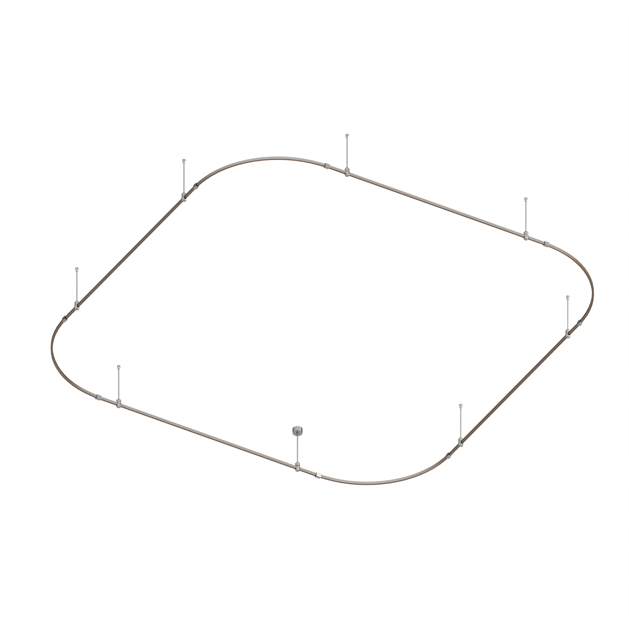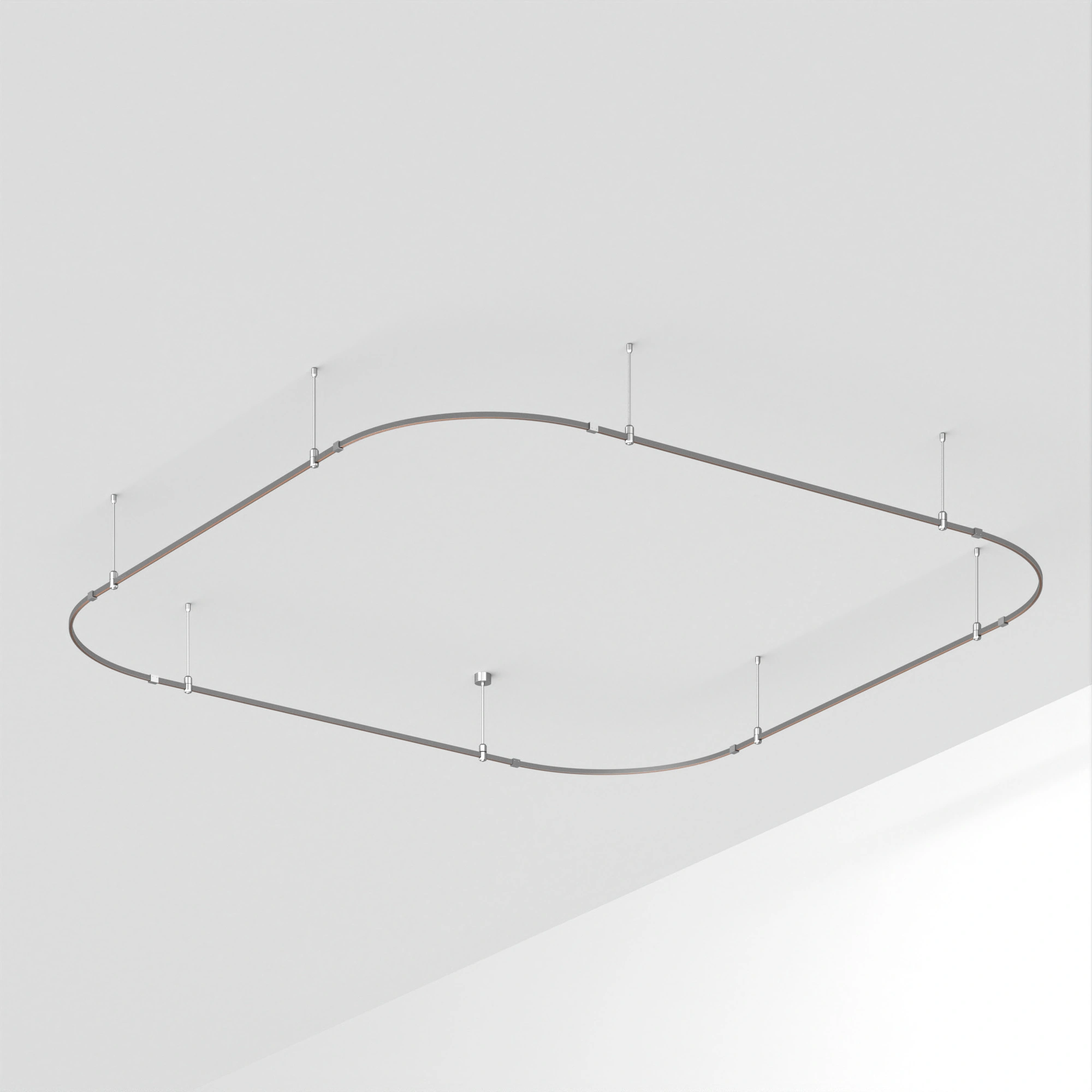 Подвесная конструкция APRIORI, форма мягкий квадрат. В комплекте треки с аксессуарами и жесткими подвесами длиной 400мм Размер ДxШxВ: 3500x3500x22мм. Монтируется подвесным способом. Шинопровод рассчитан на работу с безопасным напряжением DC48В. Изготавливается из алюминия, анодированного в цвет титан. Светильники и источники питания приобретаются отдельно.