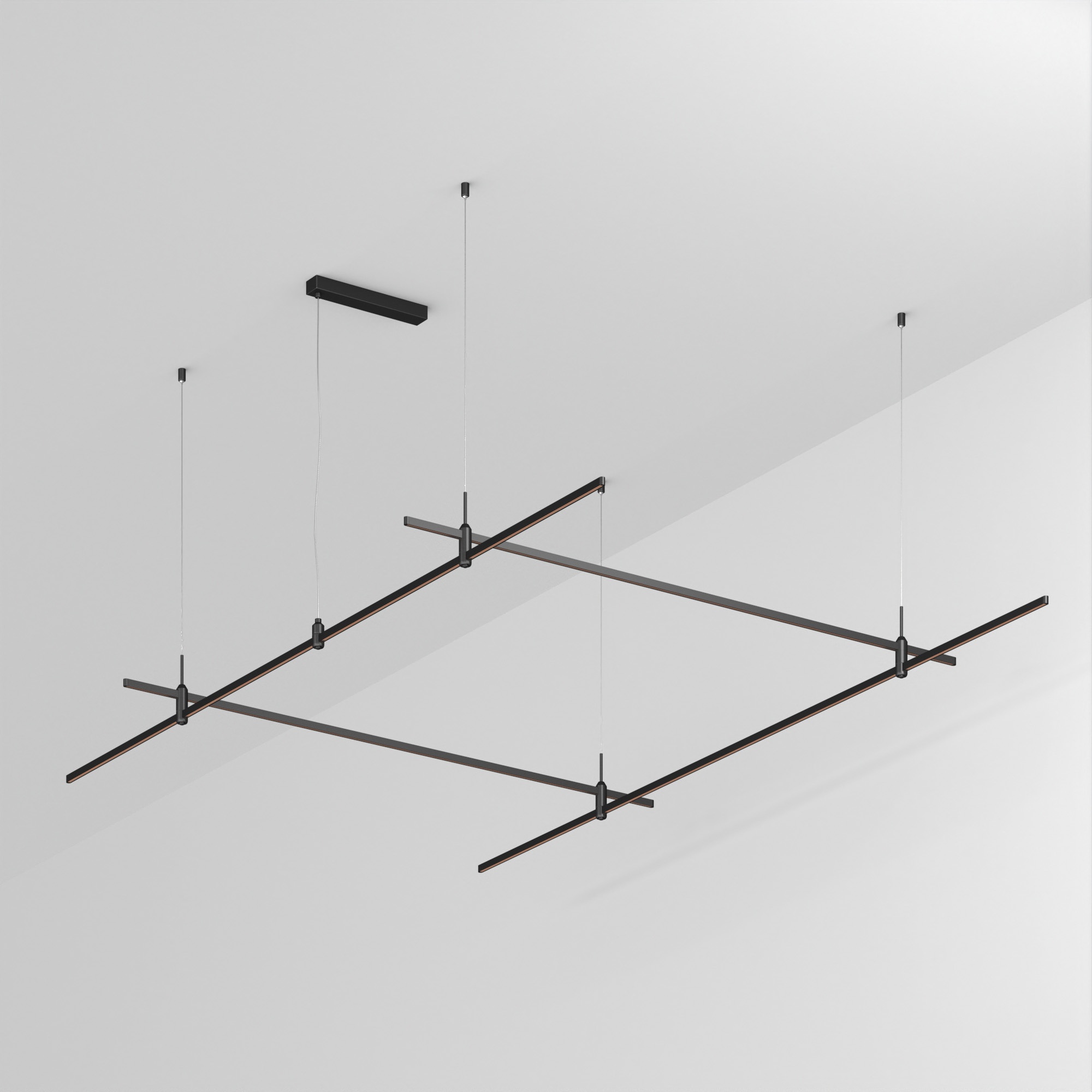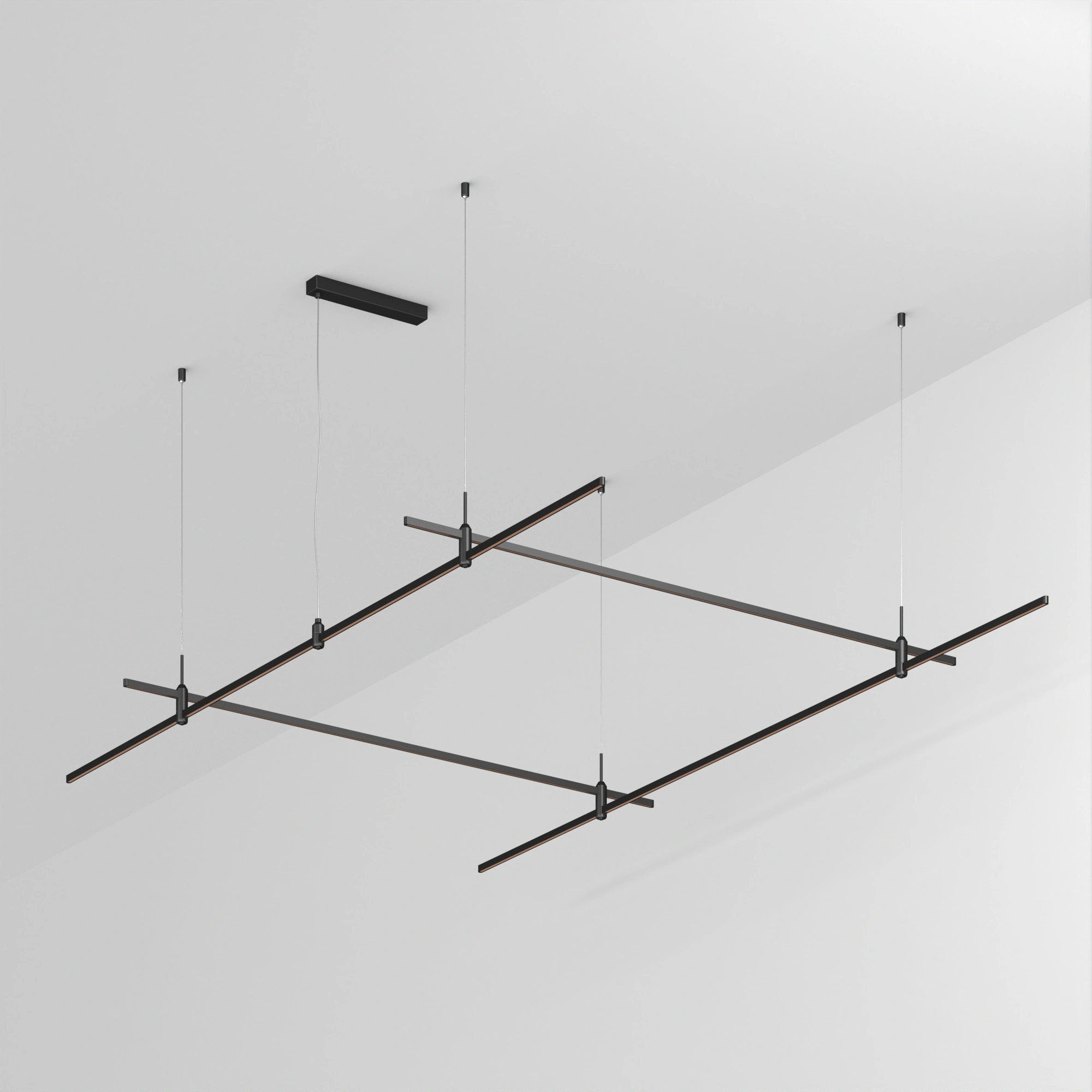Подвесная конструкция APRIORI, форма прямоугольник. В комплекте треки с аксессуарами и гибкими подвесами длиной 1500мм Размер ДxШxВ: 3000x2000x22мм. Монтируется подвесным способом. Шинопровод рассчитан на работу с безопасным напряжением DC48В. Изготавливается из алюминия, цвет черный Светильники и источники питания приобретаются отдельно.