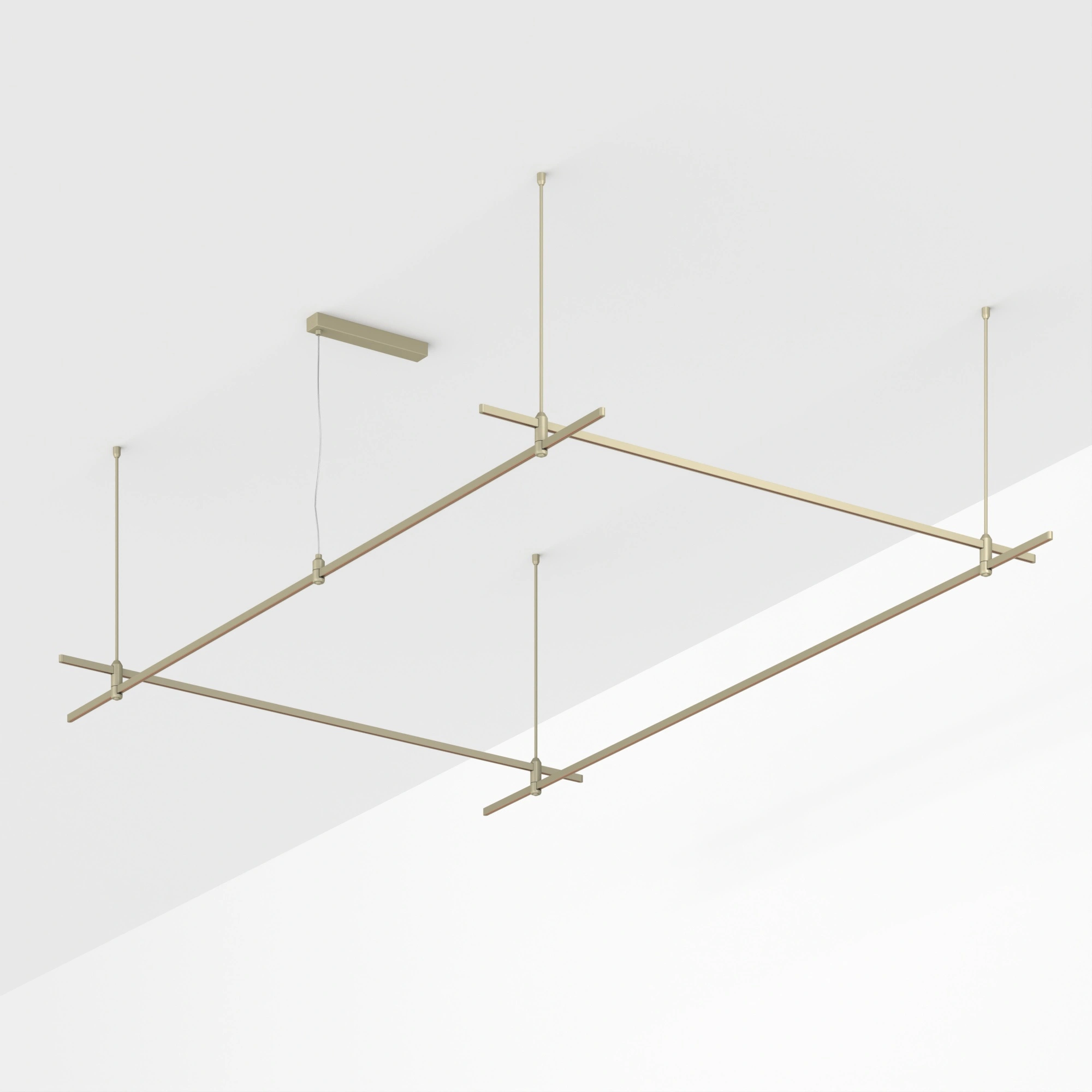 Подвесная конструкция APRIORI, форма прямоугольник. В комплекте треки с аксессуарами и жесткими подвесами длиной 800мм Размер ДxШxВ: 3000x2000x22мм. Монтируется подвесным способом. Шинопровод рассчитан на работу с безопасным напряжением DC48В. Изготавливается из алюминия, анодированного в цвет серо-оливковый. Светильники и источники питания приобретаются отдельно.