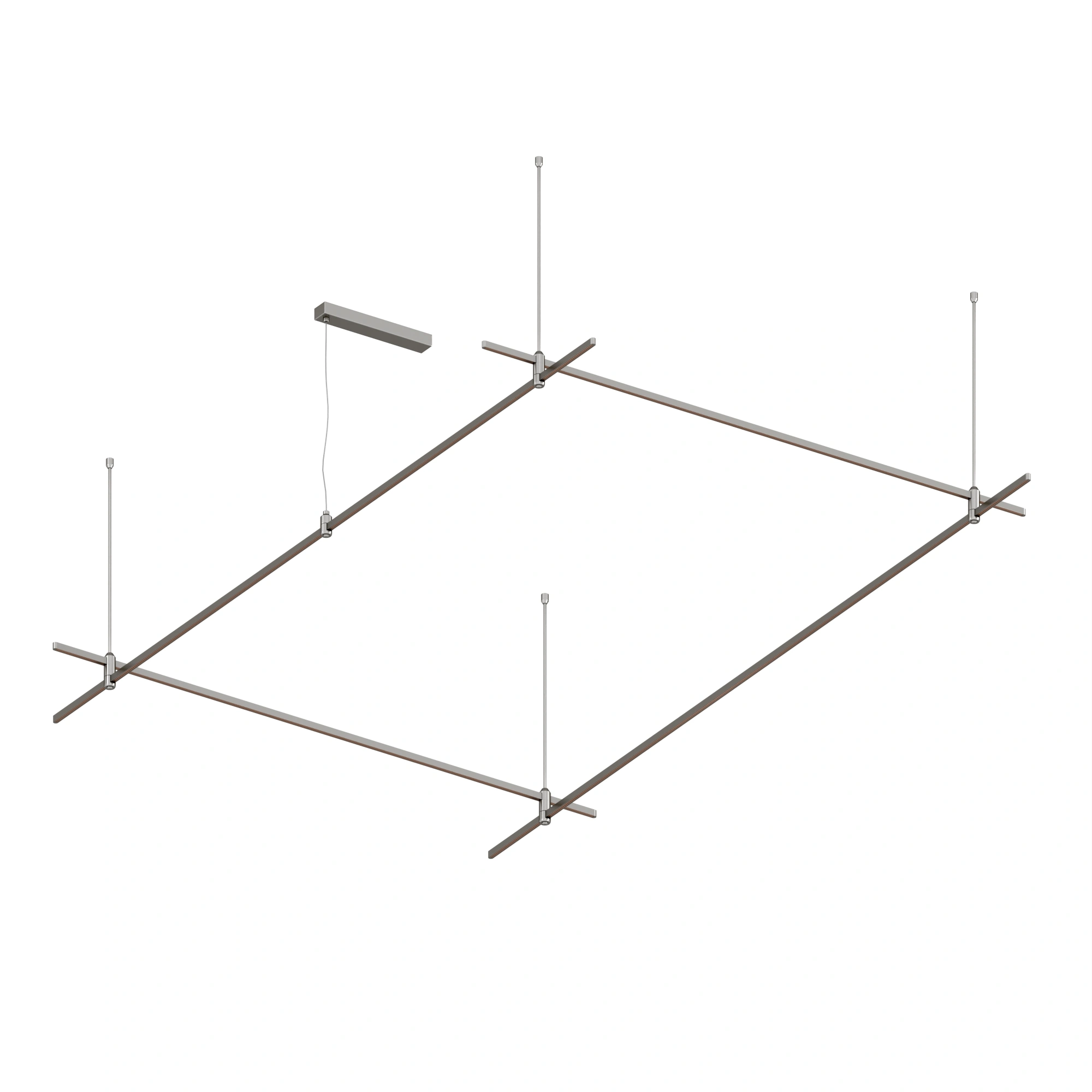 Подвесная конструкция APRIORI, форма прямоугольник. В комплекте треки с аксессуарами и жесткими подвесами длиной 800мм Размер ДxШxВ: 3000x2000x22мм. Монтируется подвесным способом. Шинопровод рассчитан на работу с безопасным напряжением DC48В. Изготавливается из алюминия, анодированного в цвет титан. Светильники и источники питания приобретаются отдельно.
