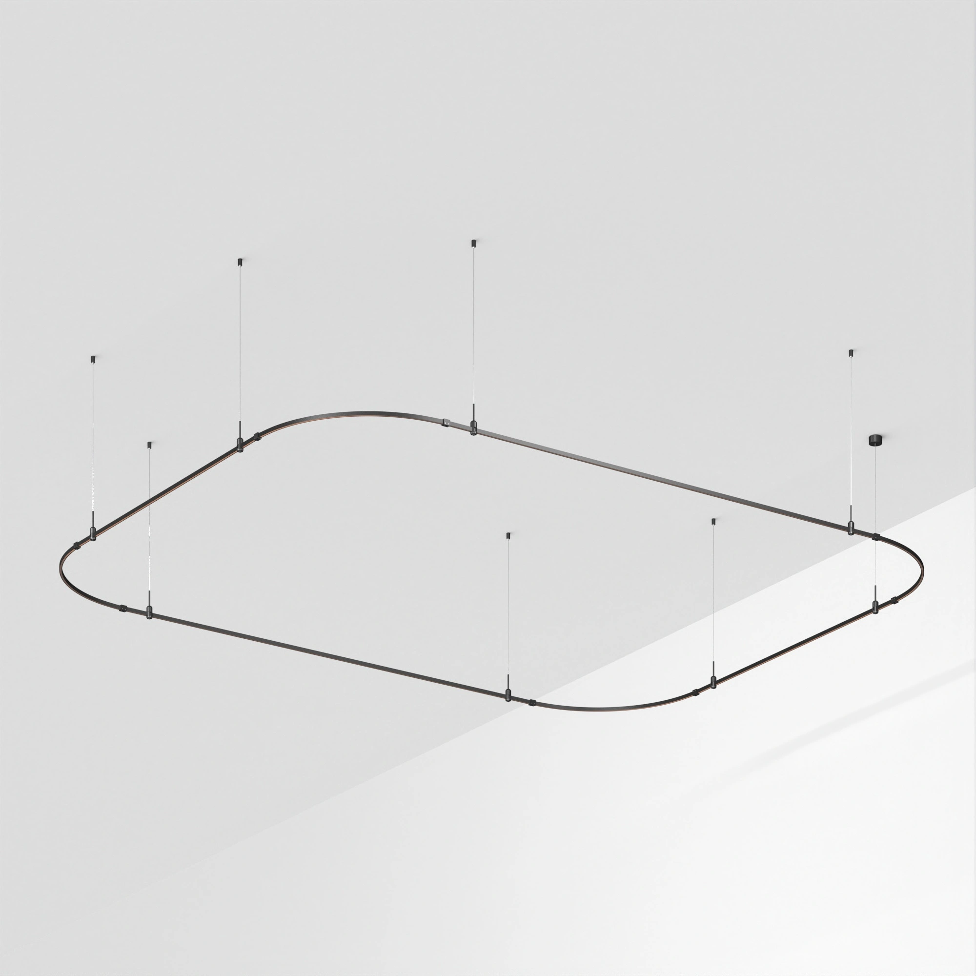 Подвесная конструкция APRIORI, форма мягкий прямоугольник. В комплекте треки с аксессуарами и гибкими подвесами длиной 1500мм Размер ДxШxВ: 4500x3500x22мм. Монтируется подвесным способом. Шинопровод рассчитан на работу с безопасным напряжением DC48В. Изготавливается из алюминия, цвет черный. Светильники и источники питания приобретаются отдельно.