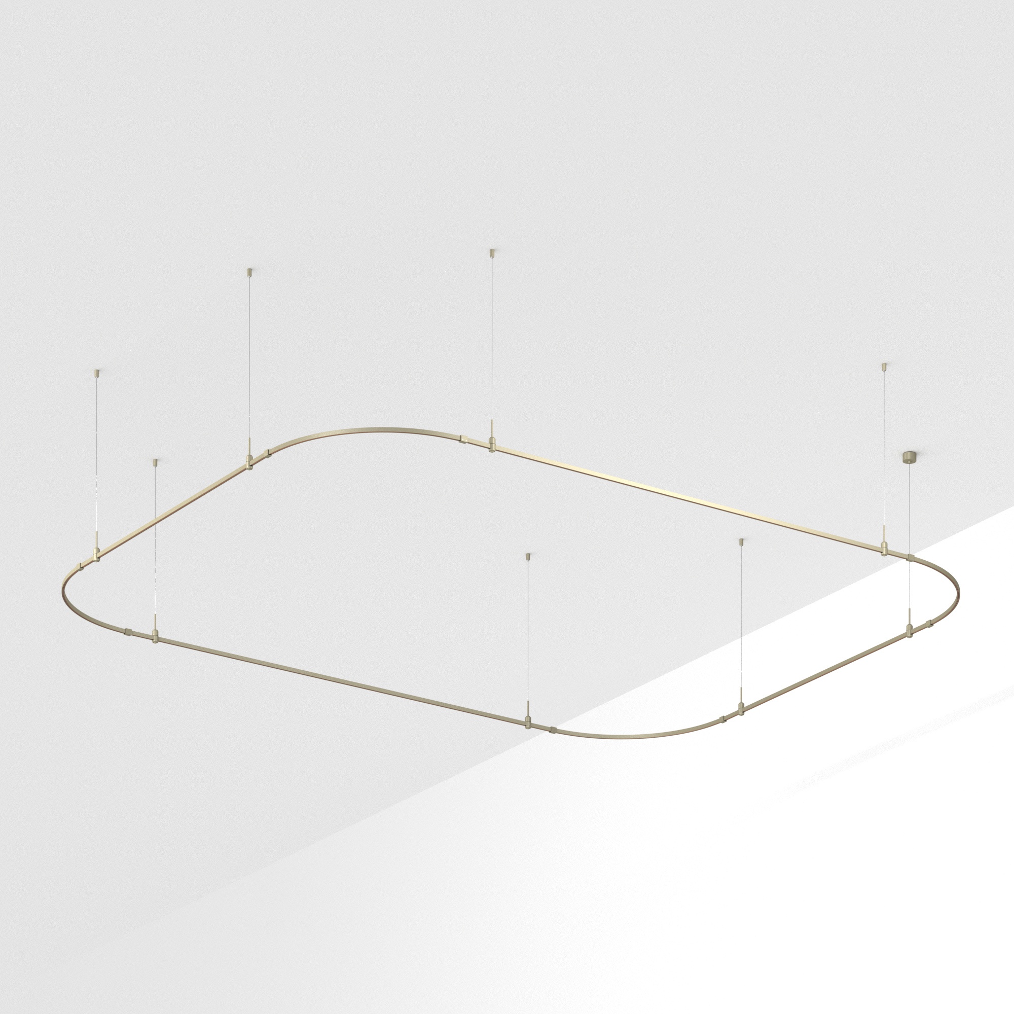 Подвесная конструкция APRIORI, форма мягкий прямоугольник. В комплекте треки с аксессуарами и гибкими подвесами длиной 1500мм Размер ДxШxВ: 4500x3500x22мм. Монтируется подвесным способом. Шинопровод рассчитан на работу с безопасным напряжением DC48В. Изготавливается из алюминия, анодированного в цвет серо-оливковый. Светильники и источники питания приобретаются отдельно.