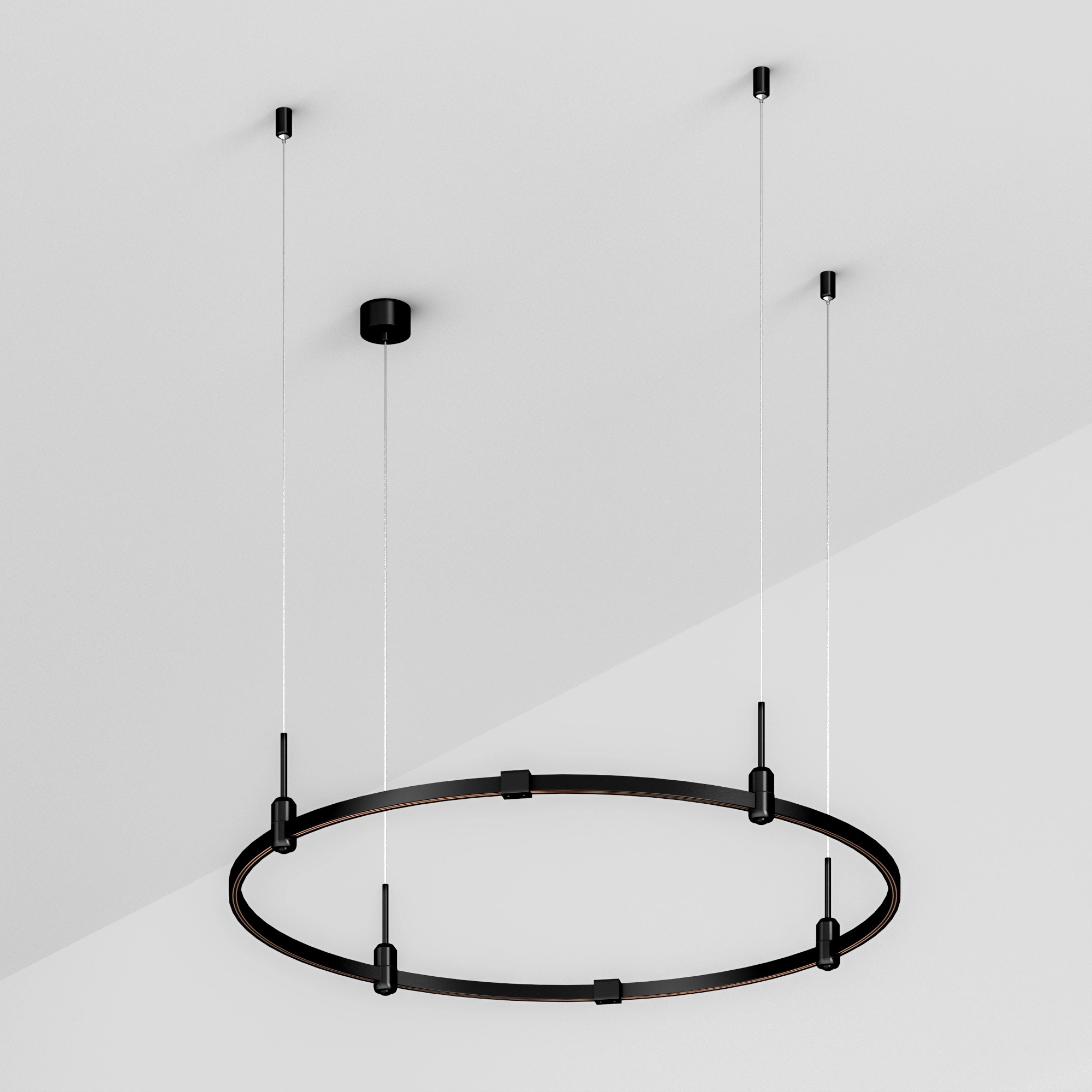 Подвесная конструкция APRIORI, форма круг. В комплекте треки с аксессуарами и гибкими подвесами длиной 1500мм Размер: диаметр 1000мм, высота 22мм. Монтируется подвесным способом. Шинопровод рассчитан на работу с безопасным напряжением DC48В. Изготавливается из алюминия, цвет черный. Светильники и источники питания приобретаются отдельно.