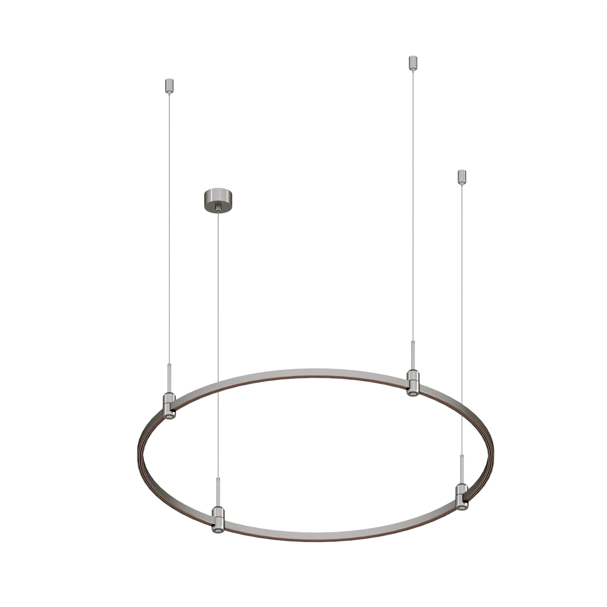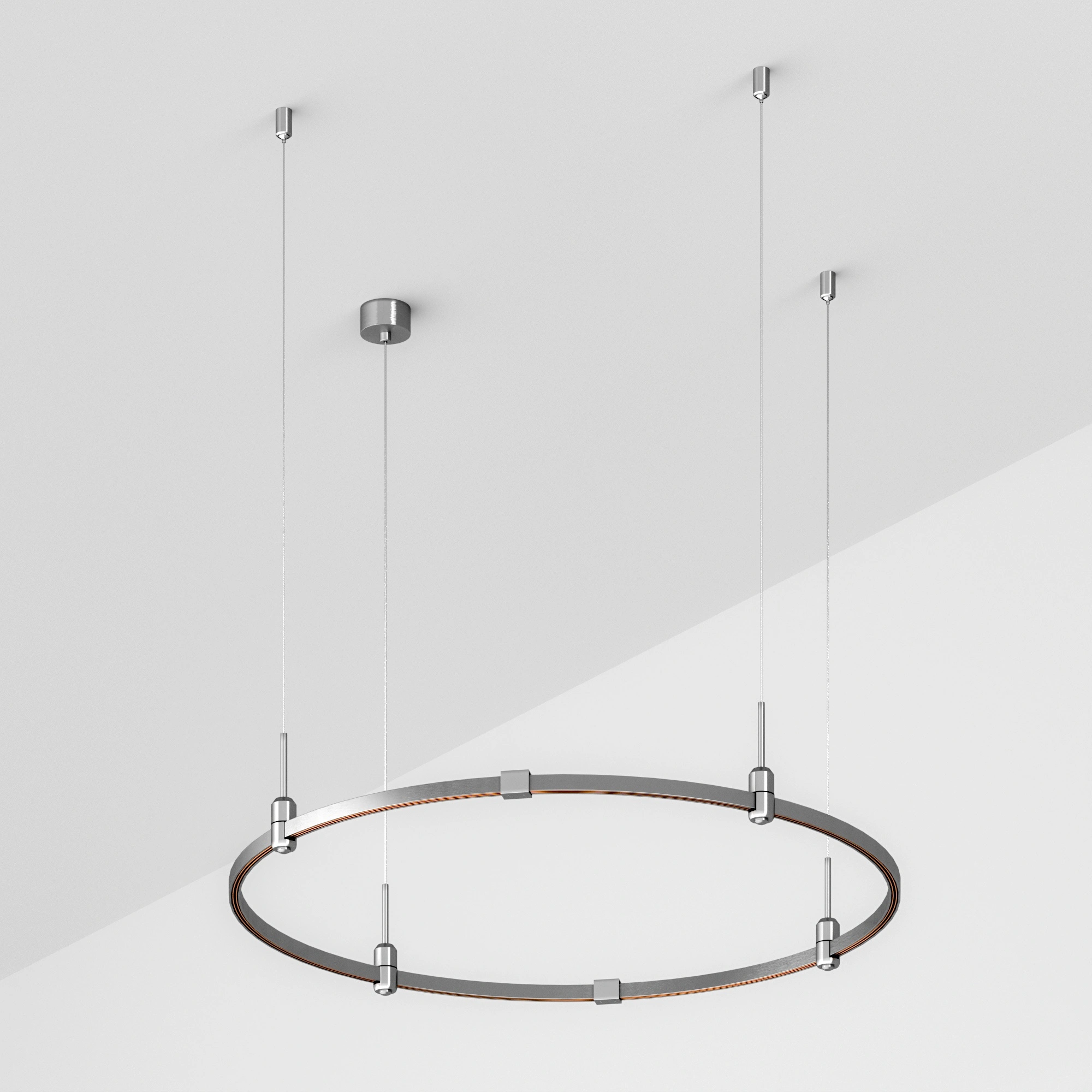 Подвесная конструкция APRIORI, форма круг. В комплекте треки с аксессуарами и гибкими подвесами длиной 1500мм Размер: диаметр 1000мм, высота 22мм. Монтируется подвесным способом. Шинопровод рассчитан на работу с безопасным напряжением DC48В. Изготавливается из алюминия, анодированного в цвет титан. Светильники и источники питания приобретаются отдельно.