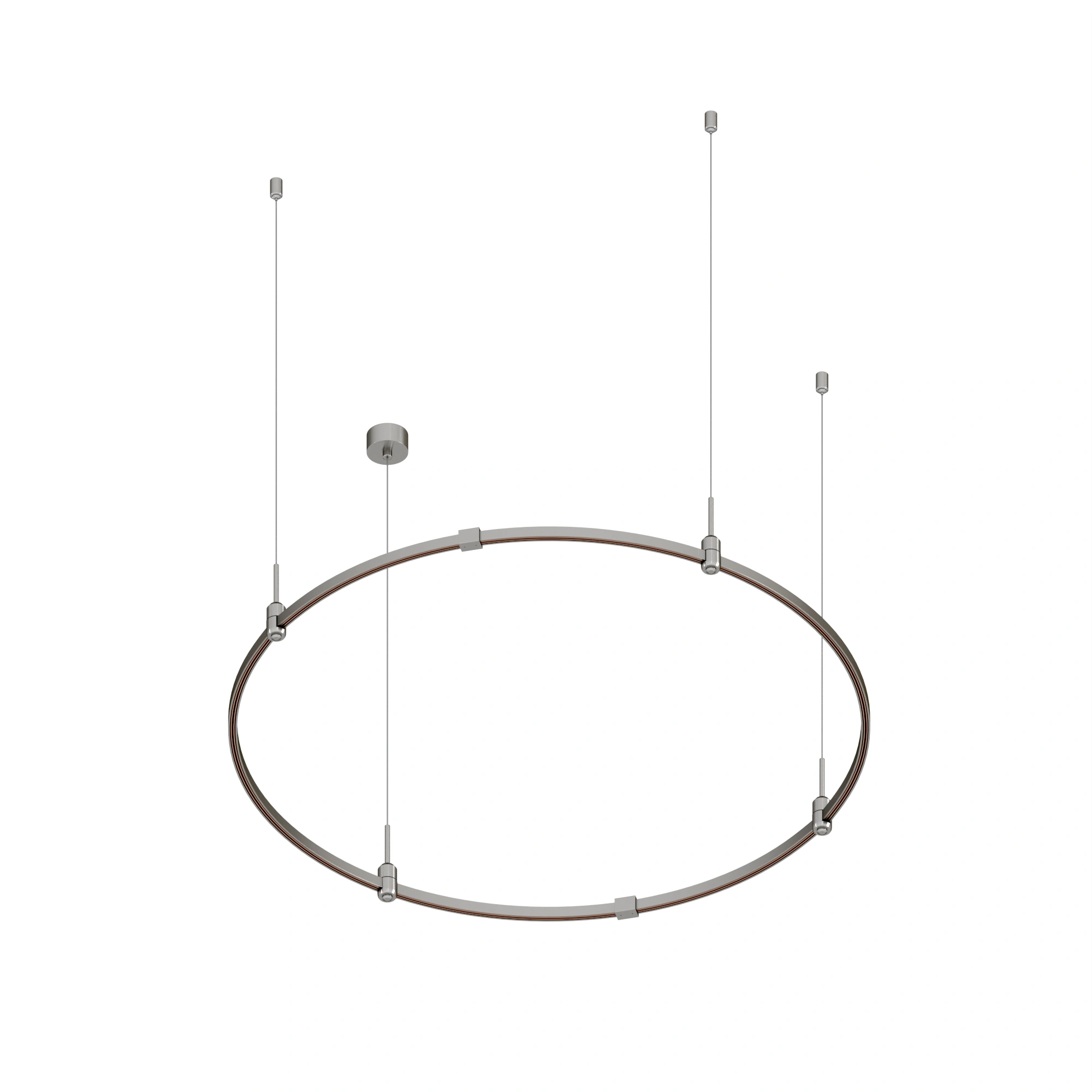 Подвесная конструкция APRIORI, форма круг. В комплекте треки с аксессуарами и гибкими подвесами длиной 1500мм Размер: диаметр 1200мм, высота 22мм. Монтируется подвесным способом. Шинопровод рассчитан на работу с безопасным напряжением DC48В. Изготавливается из алюминия, анодированного в цвет титан. Светильники и источники питания приобретаются отдельно.
