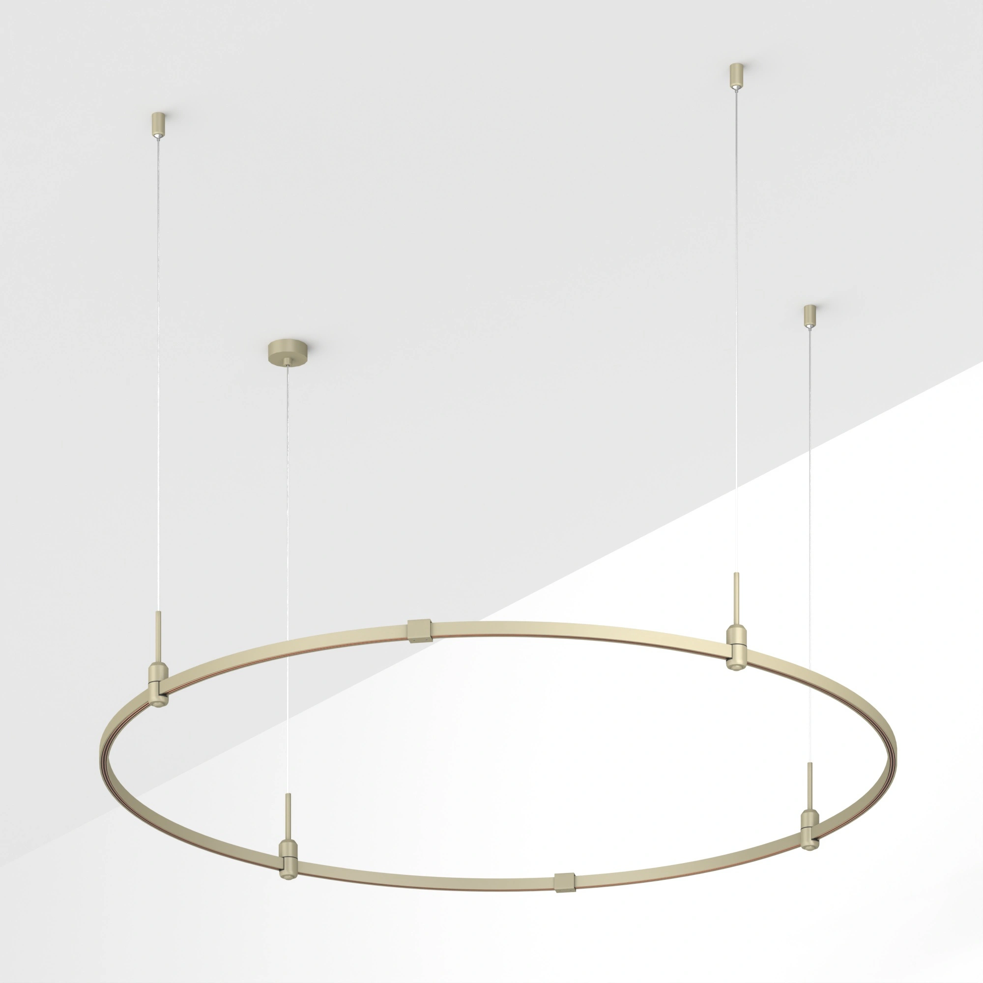 Подвесная конструкция APRIORI, форма круг. В комплекте треки с аксессуарами и гибкими подвесами длиной 1500мм Размер: диаметр 1500мм, высота 22мм. Монтируется подвесным способом. Шинопровод рассчитан на работу с безопасным напряжением DC48В. Изготавливается из алюминия, анодированного в цвет серо-оливковый. Светильники и источники питания приобретаются отдельно.