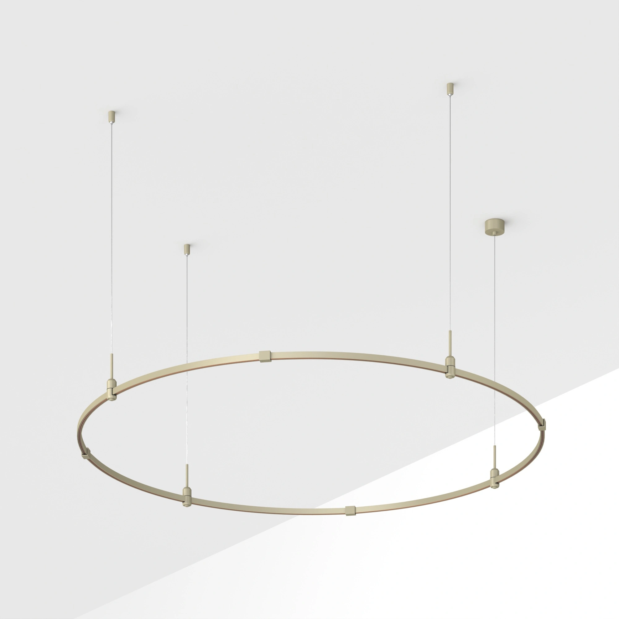 Подвесная конструкция APRIORI, форма круг. В комплекте треки с аксессуарами и гибкими подвесами длиной 1500мм Размер: диаметр 1800мм, высота 22мм. Монтируется подвесным способом. Шинопровод рассчитан на работу с безопасным напряжением DC48В. Изготавливается из алюминия, анодированного в цвет серо-оливковый. Светильники и источники питания приобретаются отдельно.