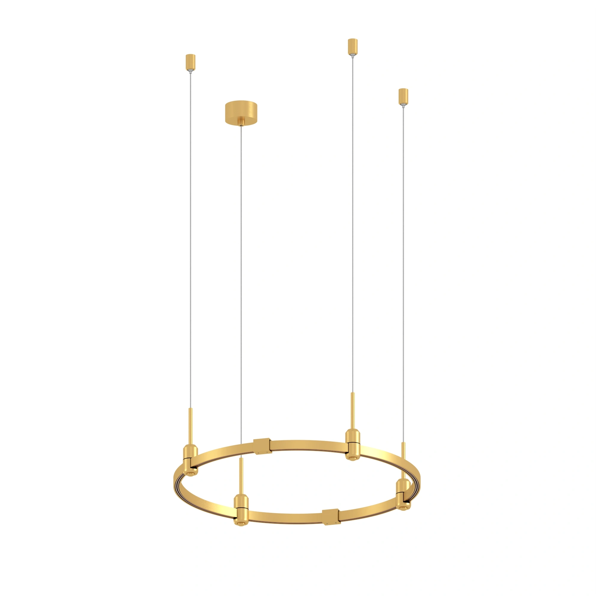 Подвесная конструкция APRIORI, форма круг. В комплекте треки с аксессуарами и гибкими подвесами длиной 1500мм Размер: диаметр 600мм, высота 22мм. Монтируется подвесным способом. Шинопровод рассчитан на работу с безопасным напряжением DC48В. Изготавливается из алюминия, анодированного в цвет светлое золото. Светильники и источники питания приобретаются отдельно.