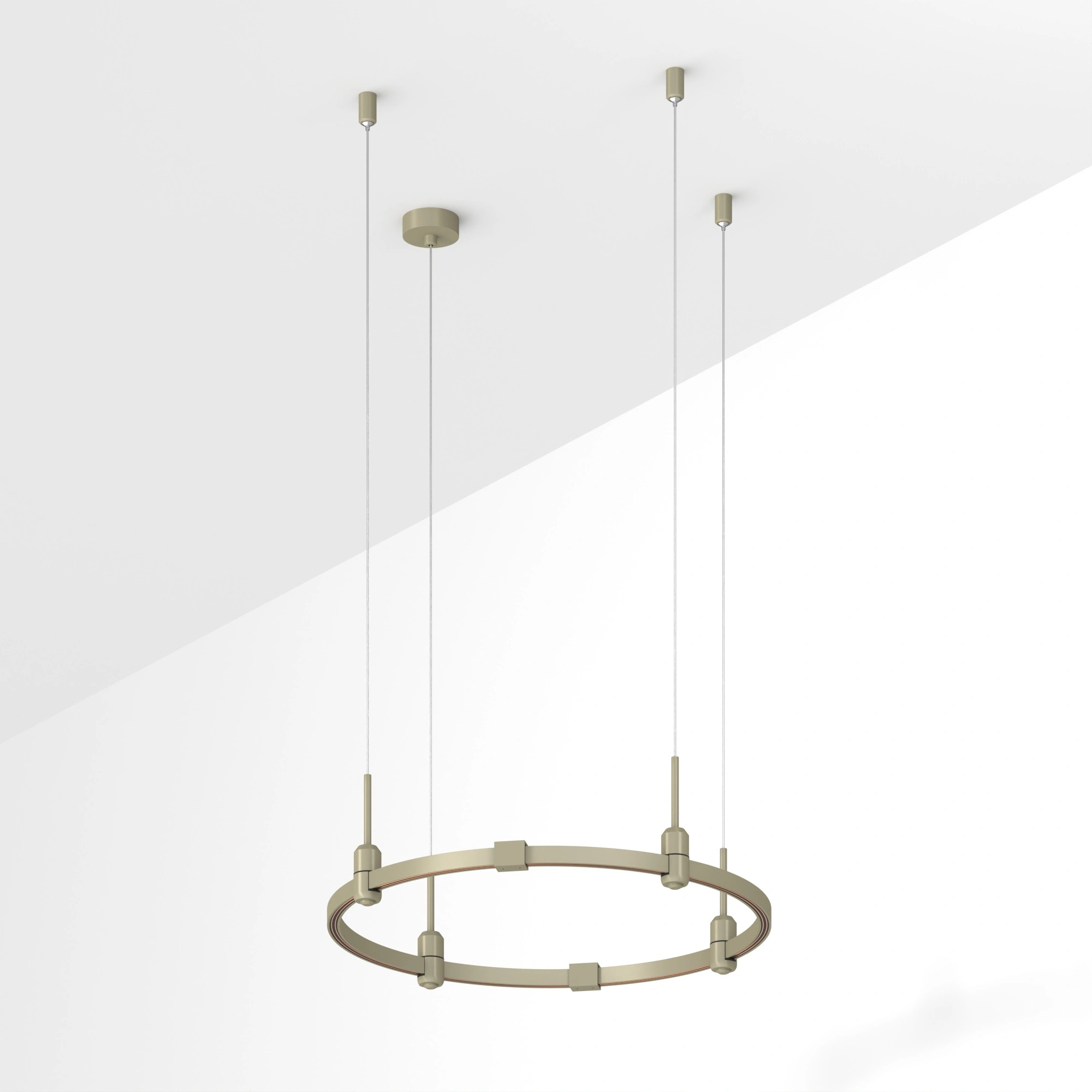 Подвесная конструкция APRIORI, форма круг. В комплекте треки с аксессуарами и гибкими подвесами длиной 1500мм Размер: диаметр 600мм, высота 22мм. Монтируется подвесным способом. Шинопровод рассчитан на работу с безопасным напряжением DC48В. Изготавливается из алюминия, анодированного в цвет серо-оливковый. Светильники и источники питания приобретаются отдельно.