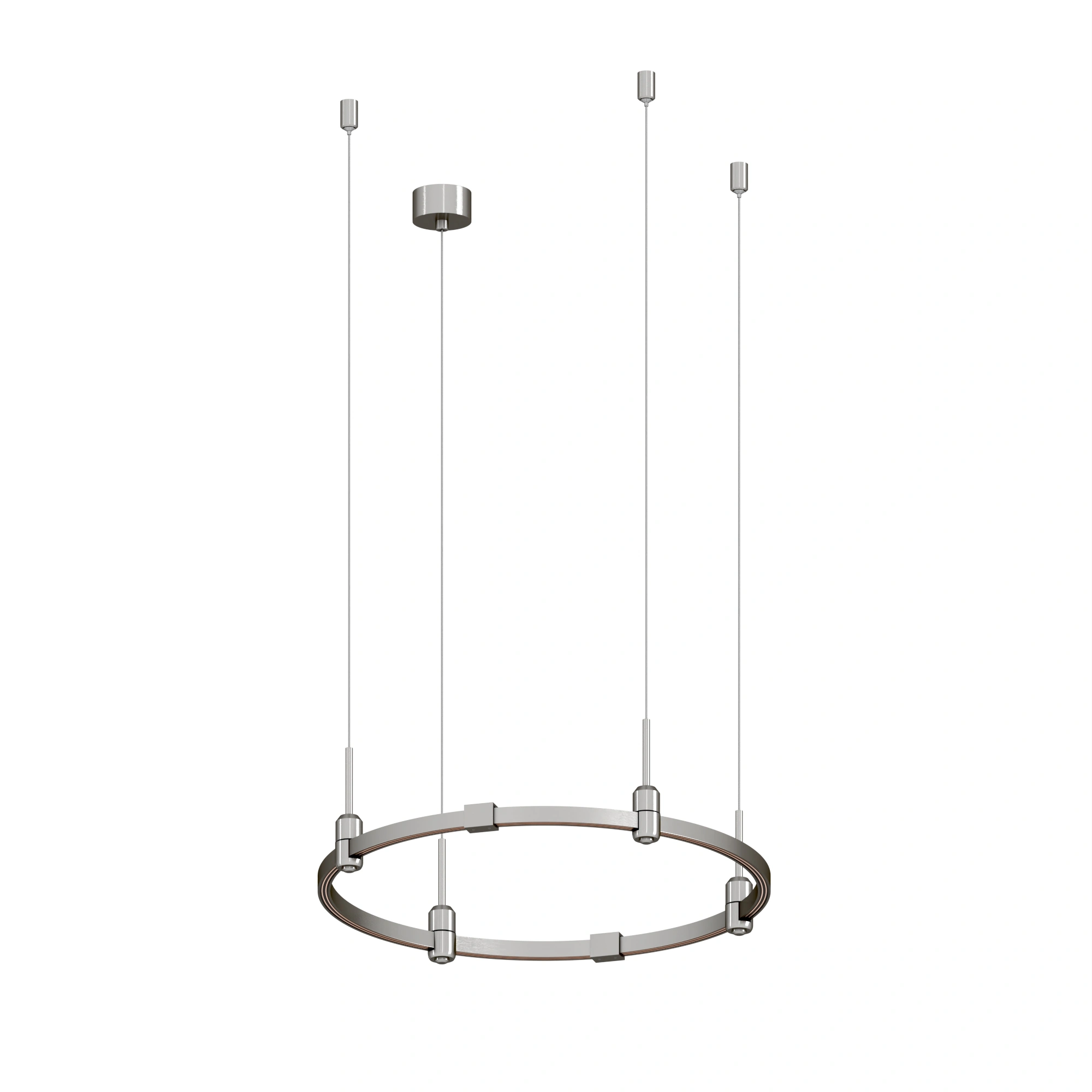 Подвесная конструкция APRIORI, форма круг. В комплекте треки с аксессуарами и гибкими подвесами длиной 1500мм Размер: диаметр 600мм, высота 22мм. Монтируется подвесным способом. Шинопровод рассчитан на работу с безопасным напряжением DC48В. Изготавливается из алюминия, анодированного в цвет титан. Светильники и источники питания приобретаются отдельно.