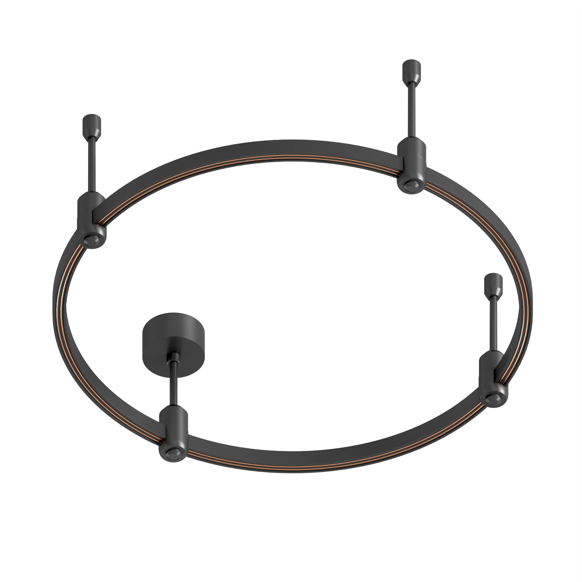 Подвесная конструкция APRIORI, форма круг. В комплекте треки с аксессуарами и жесткими подвесами длиной 200мм Размер: диаметр 600мм, высота 22мм. Монтируется подвесным способом. Шинопровод рассчитан на работу с безопасным напряжением DC48В. Изготавливается из алюминия, цвет черный Светильники и источники питания приобретаются отдельно.