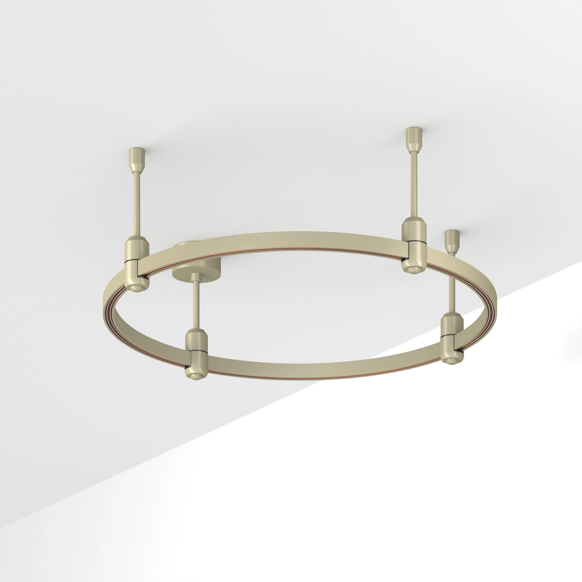 Подвесная конструкция APRIORI, форма круг. В комплекте треки с аксессуарами и жесткими подвесами длиной 200мм Размер: диаметр 600мм, высота 22мм. Монтируется подвесным способом. Шинопровод рассчитан на работу с безопасным напряжением DC48В. Изготавливается из алюминия, анодированного в цвет серо-оливковый. Светильники и источники питания приобретаются отдельно.