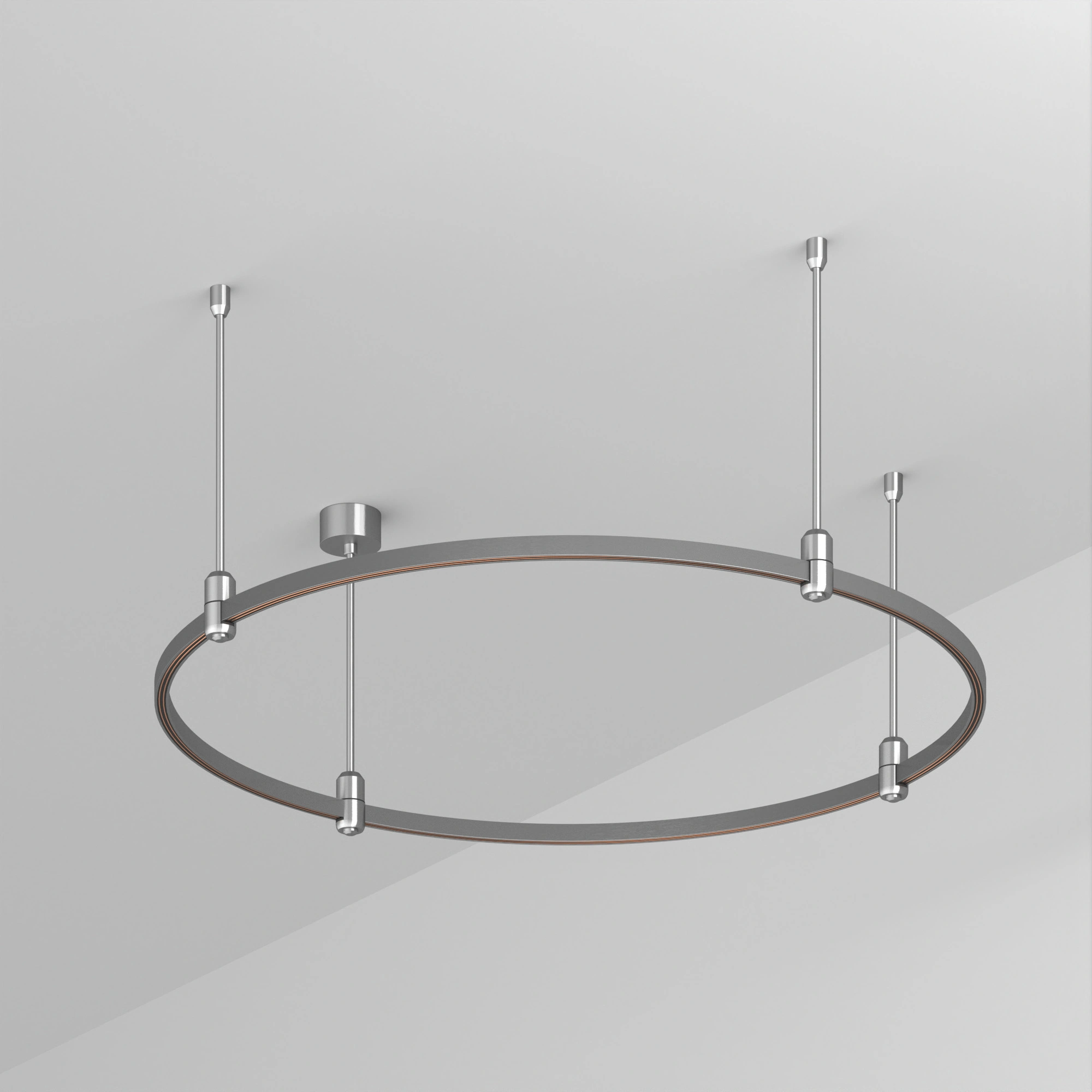 Подвесная конструкция APRIORI, форма круг. В комплекте треки с аксессуарами и жесткими подвесами длиной 400мм Размер: диаметр 1000мм, высота 22мм. Монтируется подвесным способом. Шинопровод рассчитан на работу с безопасным напряжением DC48В. Изготавливается из алюминия, анодированного в цвет титан. Светильники и источники питания приобретаются отдельно.