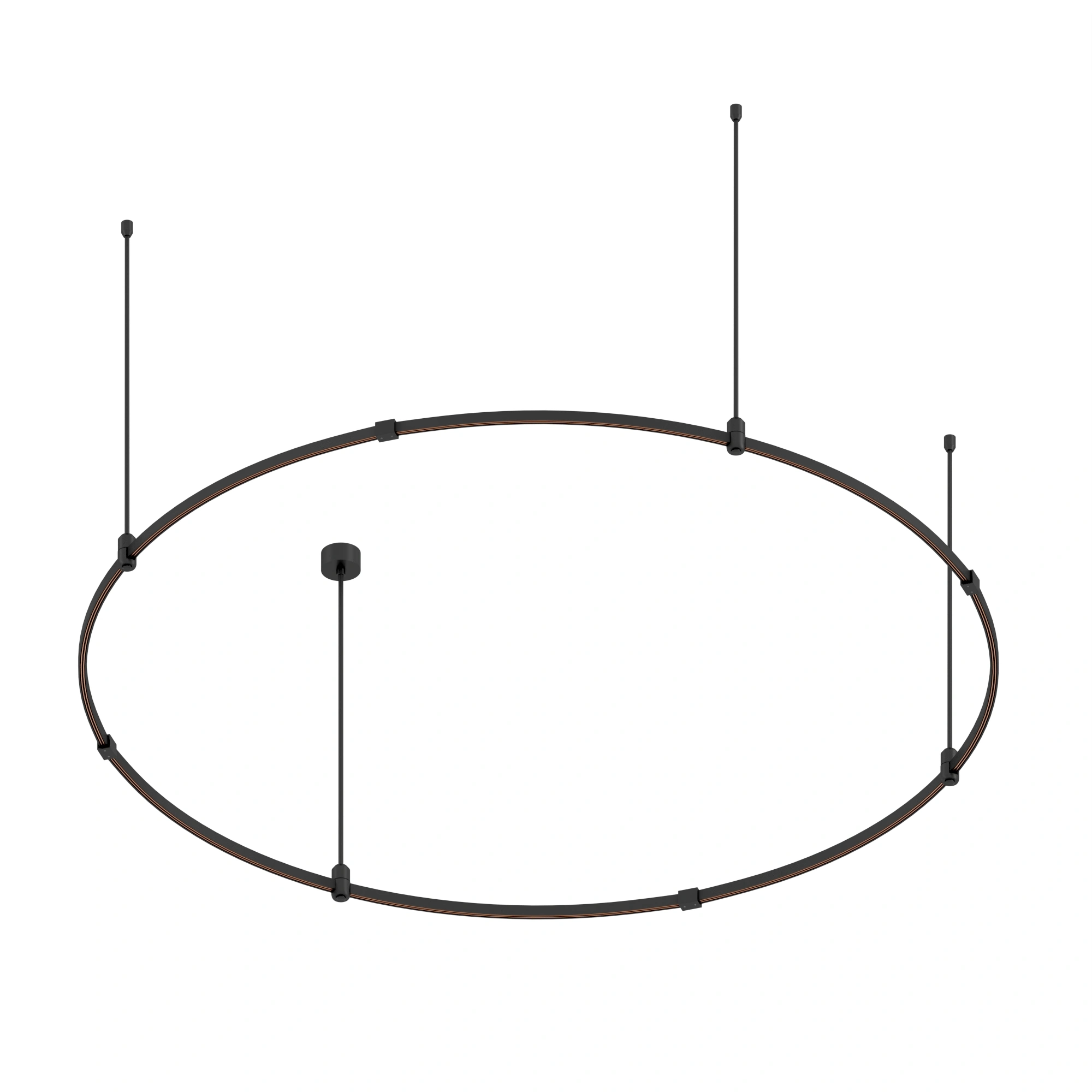 Подвесная конструкция APRIORI, форма круг. В комплекте треки с аксессуарами и жесткими подвесами длиной 400мм Размер: диаметр 1500мм, высота 22мм. Монтируется подвесным способом. Шинопровод рассчитан на работу с безопасным напряжением DC48В. Изготавливается из алюминия, цвет черный Светильники и источники питания приобретаются отдельно.