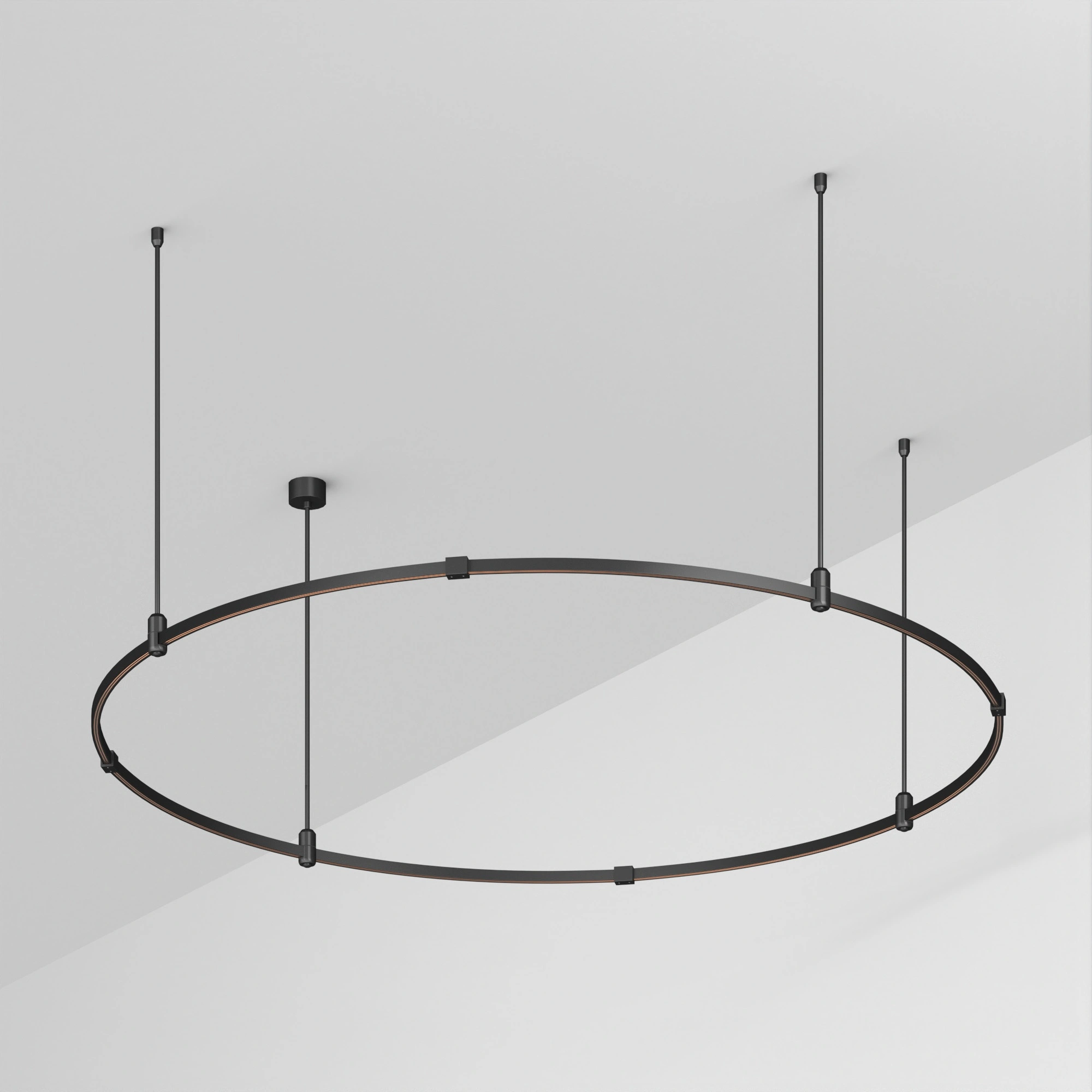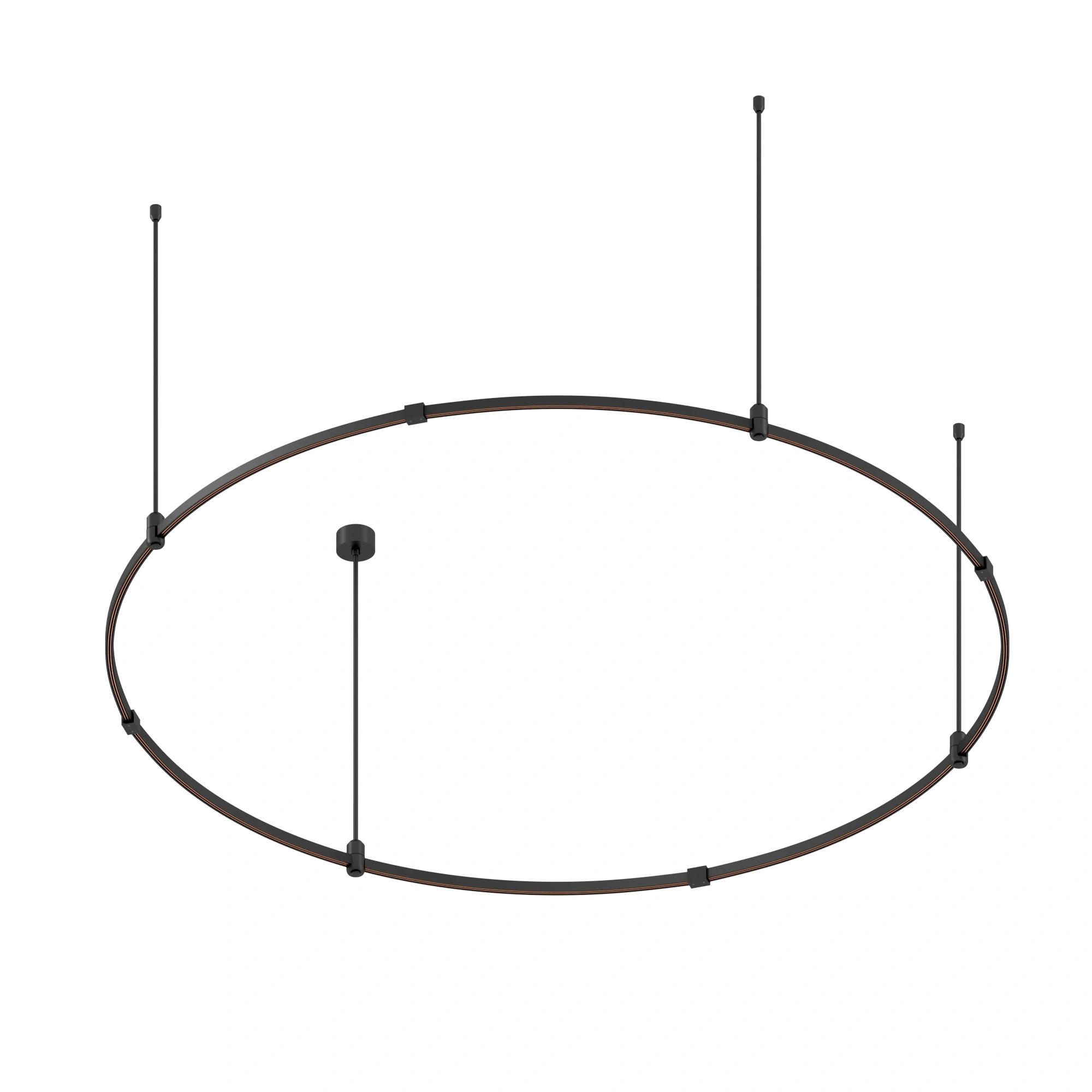 Подвесная конструкция APRIORI, форма круг. В комплекте треки с аксессуарами и жесткими подвесами длиной 800мм Размер: диаметр 1800мм, высота 22мм. Монтируется подвесным способом. Шинопровод рассчитан на работу с безопасным напряжением DC48В. Изготавливается из алюминия, цвет черный Светильники и источники питания приобретаются отдельно.