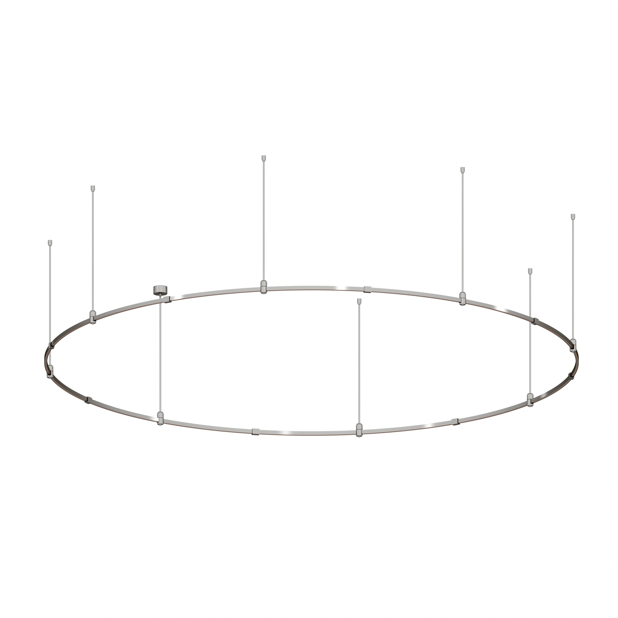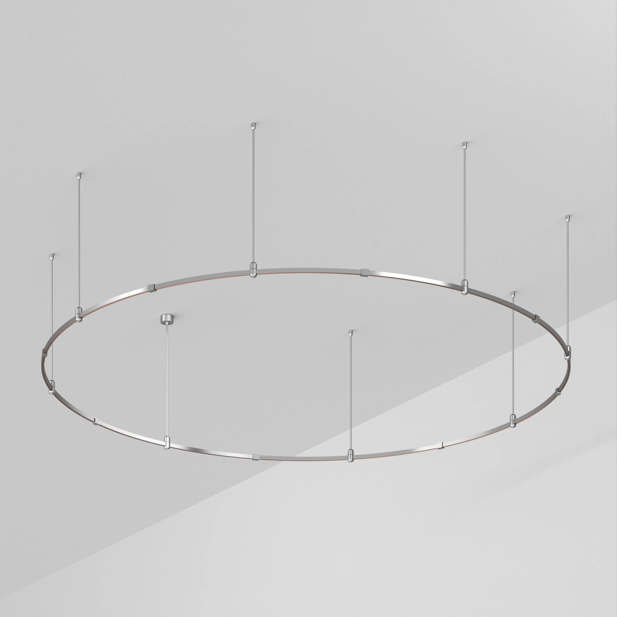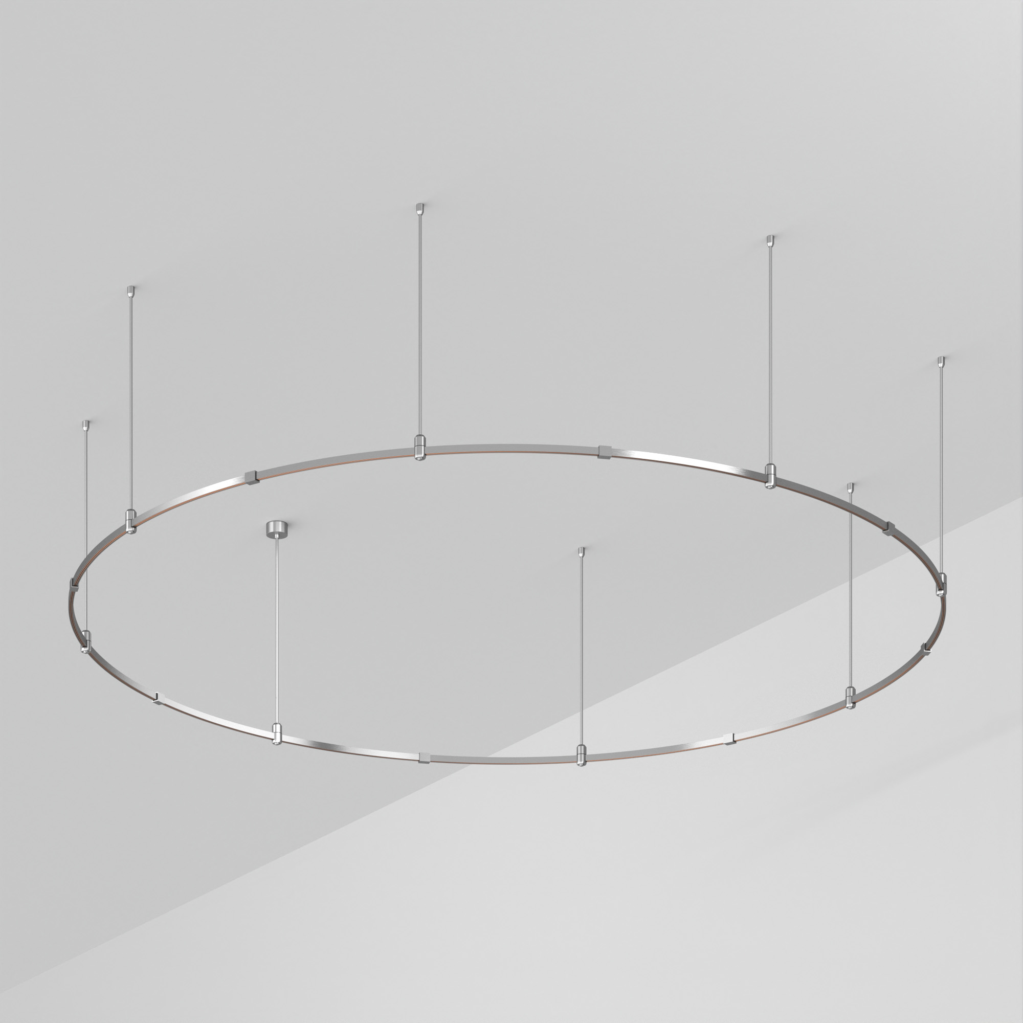 Подвесная конструкция APRIORI, форма круг. В комплекте треки с аксессуарами и жесткими подвесами длиной 800мм Размер: диаметр 3000мм, высота 22мм. Монтируется подвесным способом. Шинопровод рассчитан на работу с безопасным напряжением DC48В. Изготавливается из алюминия, анодированного в цвет титан. Светильники и источники питания приобретаются отдельно.