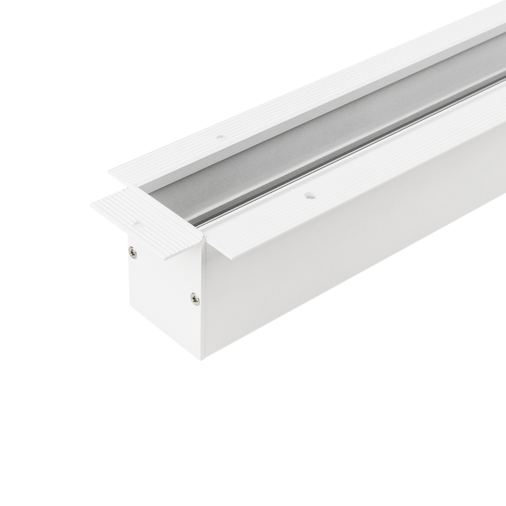 Встраиваемый магнитный трек с фланцем, длина 1540мм. DC24V. Материал алюминий, цвет белый. Две заглушки в комплекте. Размер ДxШxВ: 1500x45x60мм. Размер (с учетом заглушек и фланцев) ДxШxВ: 1540x75x60мм. Установка в отверстие ДхШхВ 1515x50x70мм.