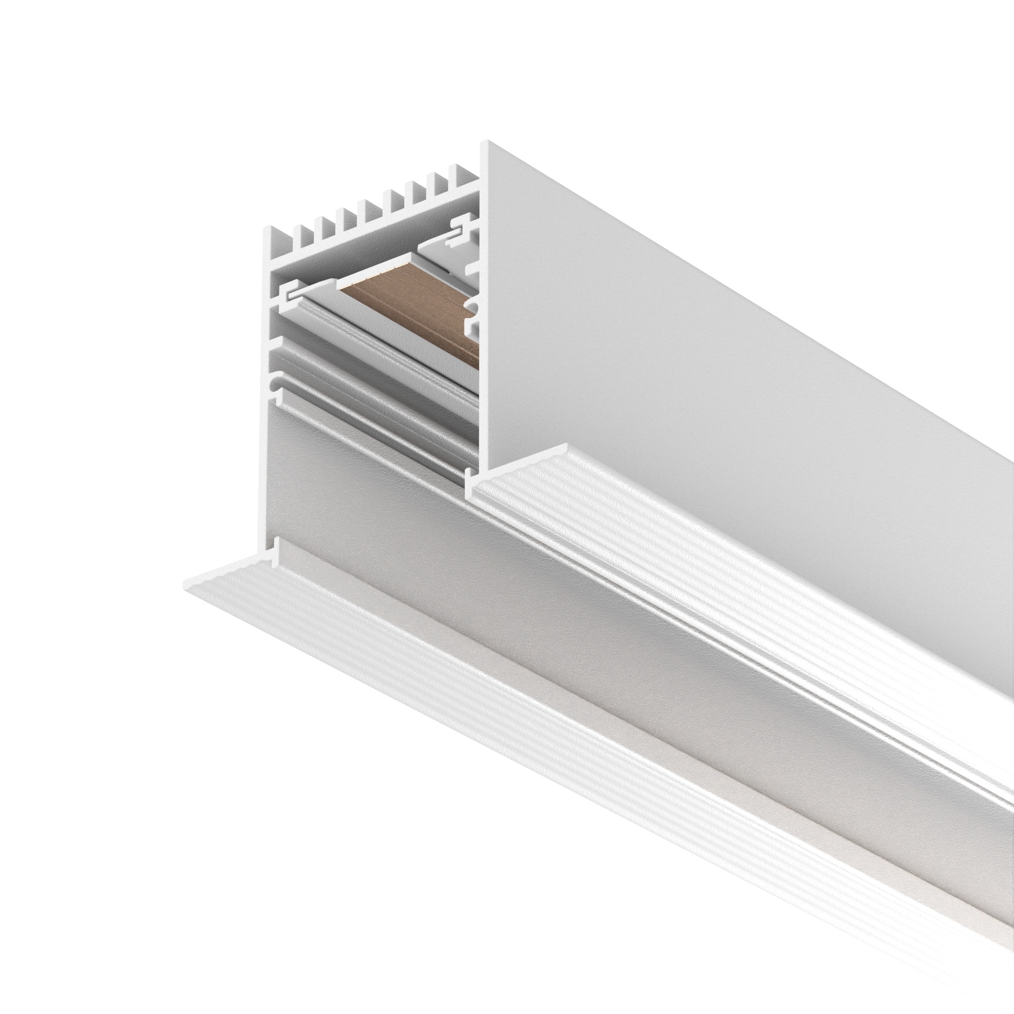 Встраиваемый магнитный трек с фланцем MAG-TRACK-4560-F-3040 (WH, 5LN) длиной 3040 мм. Напряжение питания 24 В. Две заглушки в комплекте. Установка в отверстие (Д×Ш×В) 3015×50×70 мм.