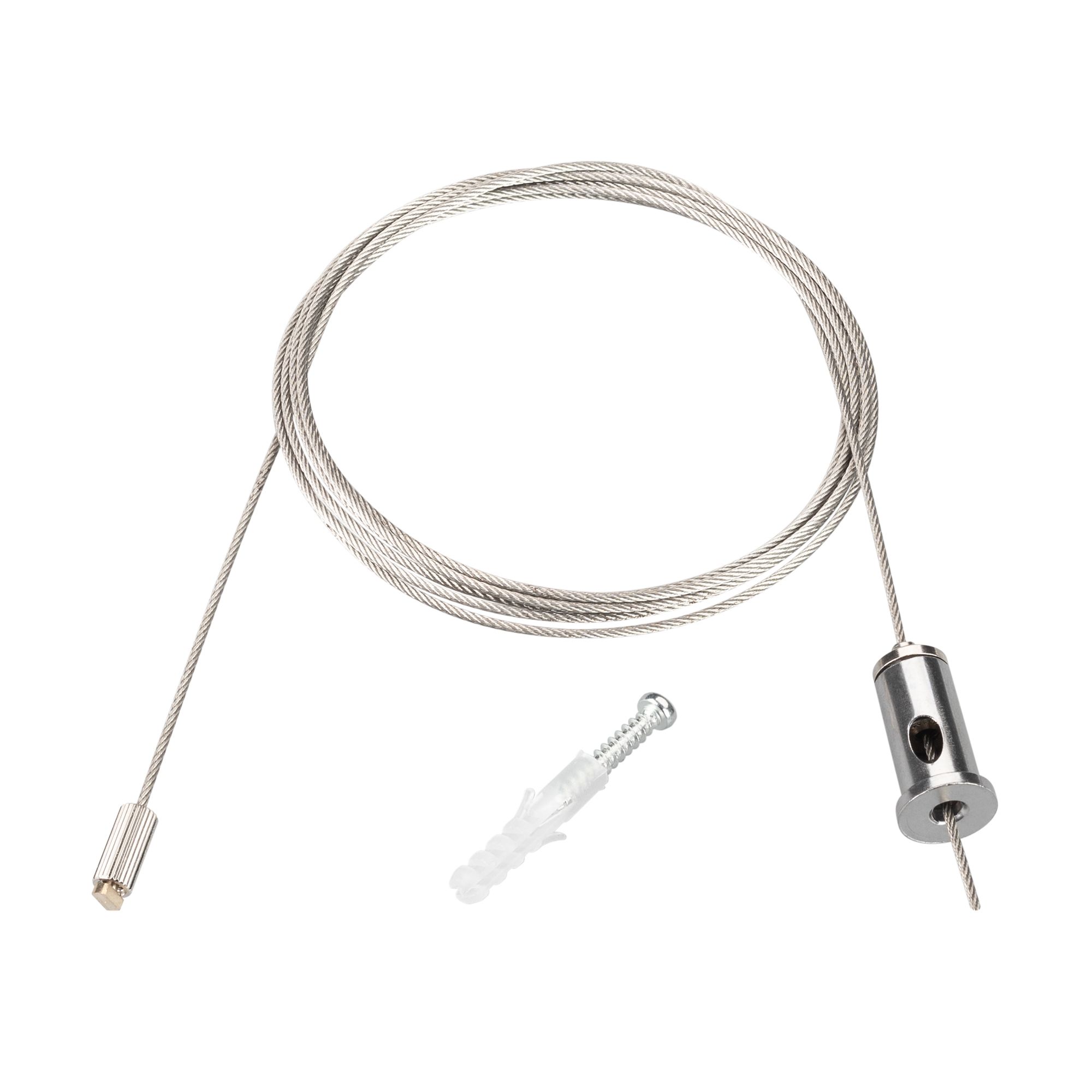 Подвес для профиля ROUND-D20. Цвет - серебристый. В комплекте: трос 2 м - 1 шт., шуруп с дюбелем - 1 шт. Максимальная нагрузка на 1 трос 10 кг. Цена за комплект из одного троса.