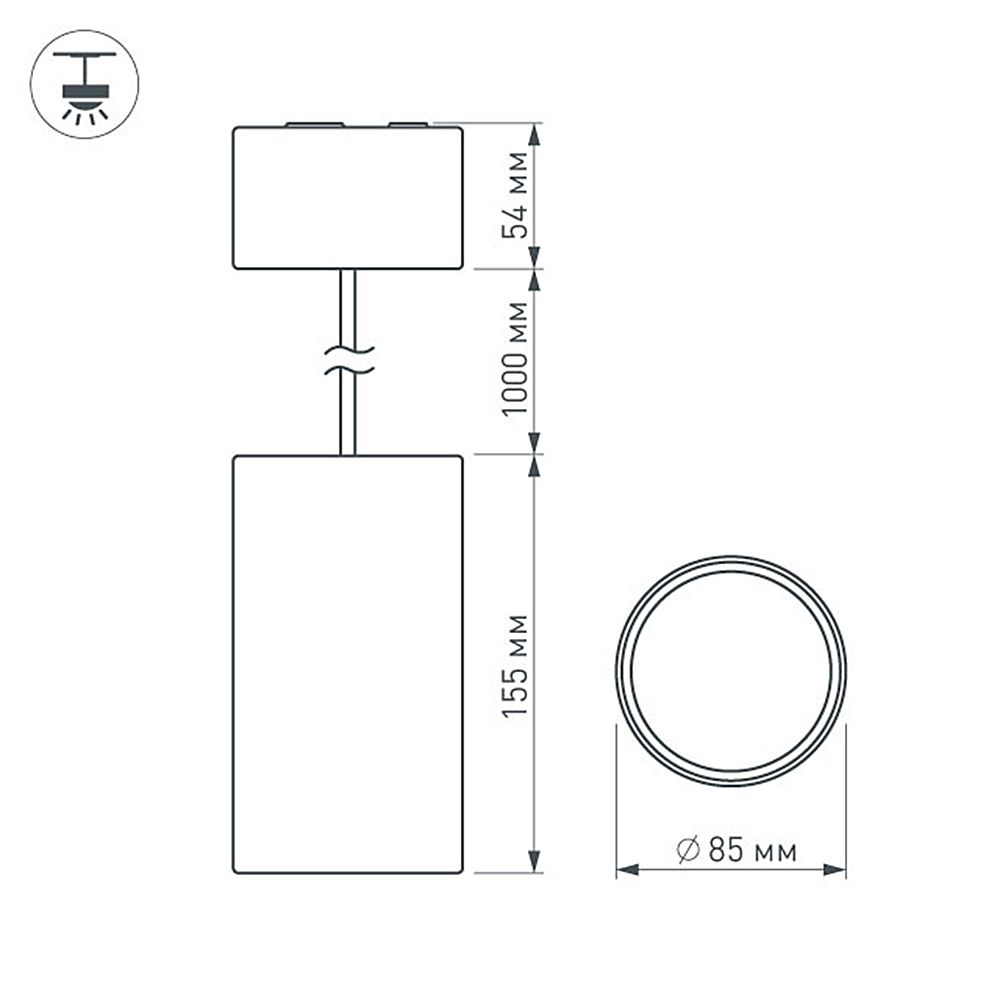 Характеристики - Цилиндр подвесной SP-POLO-R85P Black (1-3) (Arlight, IP20 Металл, 3 года)