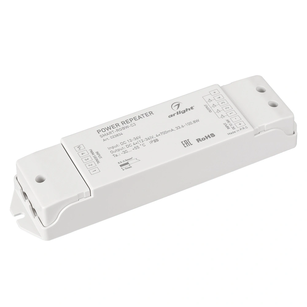 Характеристики - Усилитель SMART-RGBW-С3 (12-36V, 4x700mA) (Arlight, IP20 Пластик, 5 лет)