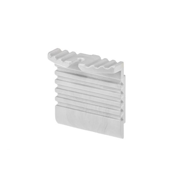 Серая глухая заглушка из ПВХ для профиля ALU-POWER-W35 с выступом для крепления к стене. Придает законченный вид светильнику, а также защищает светодиодную ленту от внешних факторов (грязи, пыли и прочего).