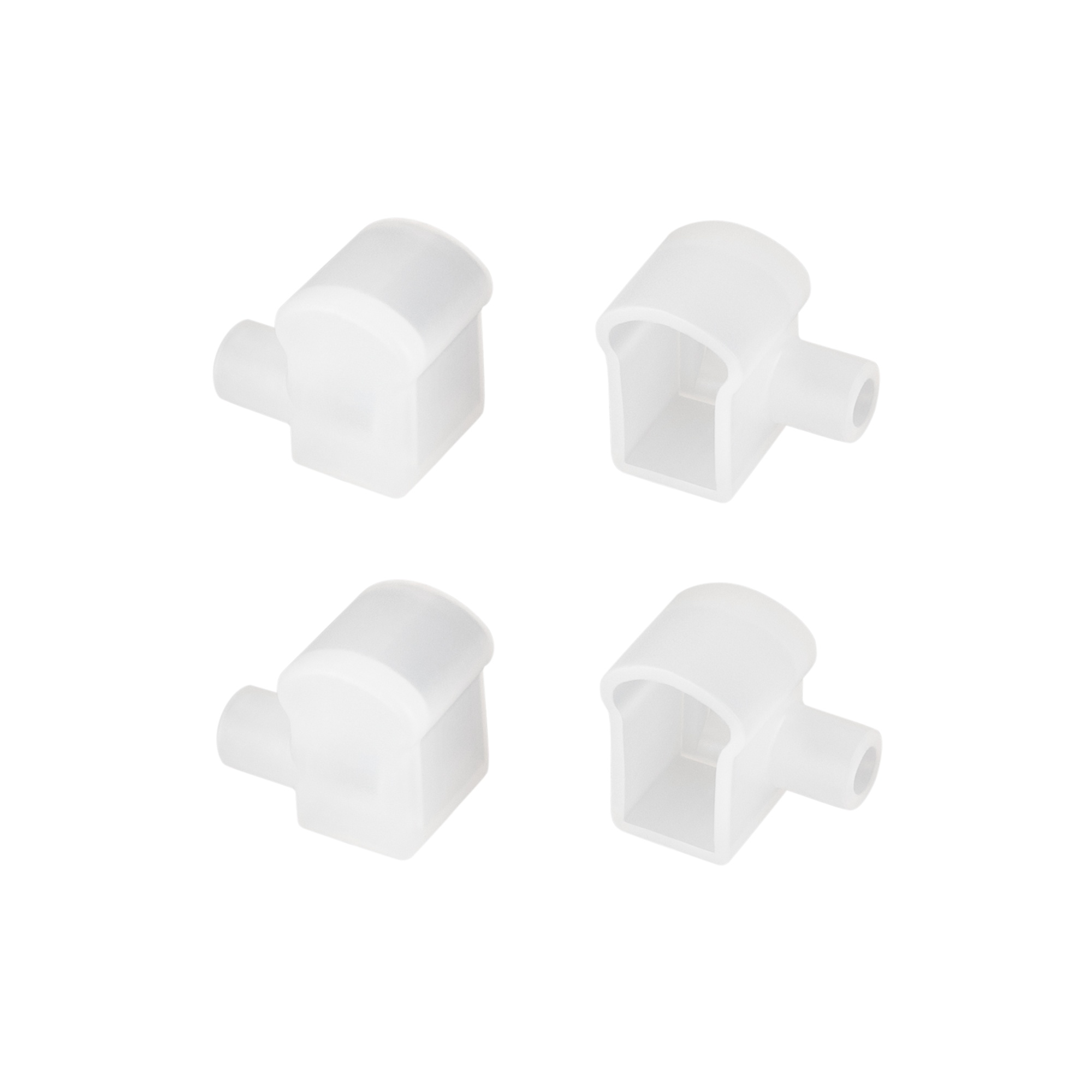 Белые силиконовые заглушки (4 шт.) с отверстием для профиля WPH-FLEX-0817-SIDE. Придают законченный вид светильнику, а также защищают светодиодную ленту от внешних факторов (грязи, пыли и прочего). Отверстие в заглушке позволяет вывести кабель питания светодиодной ленты.