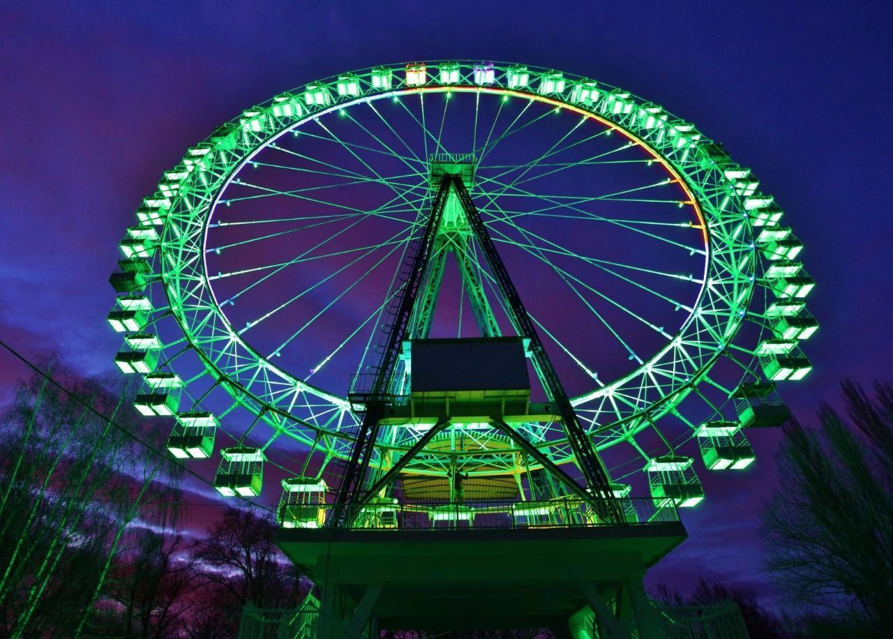 Проектирование и реализация динамической RGB-подсветки большого колеса обозрения в парке Измайлово, Москва - один из показательных кейсов Lightwerk в сфере архитектурного и развлекательного освещения.