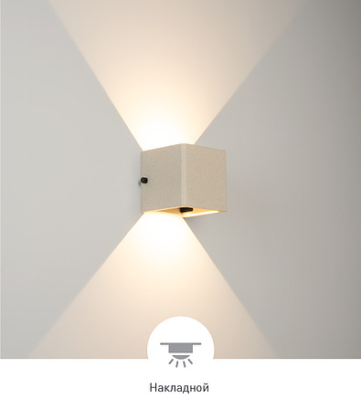 Настенный светильник создает лучи света, направленные вверх и вниз, с теплым цветом свечения (3000 K) и высокой цветопередачей (СRI>90), подчеркивая рельеф поверхности архитектурных сооружений. Кубический корпус выполнен из бетона и гармонично смотрится на фасадах зданий. Угол каждого из лучей регулируется, чтобы формировать выразительные световые акценты на поверхностях стен. Высокая степень защиты IP65 предотвращает попадание влаги и пыли внутрь светильника, что позволяет использовать его под открытым небом.