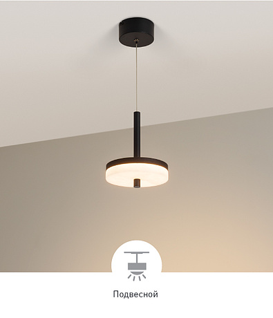 Подвесной светильник. Мощность 12 Вт, св. поток 597 лм, 50 лм/Вт, теплый 2700 K, CRI>92, угол 130°, напряжение питания 230 В. Черный круглый корпус из алюминия, рассеиватель из мрамора, степень защиты IP20. Размер: диаметр 164 мм, высота 206 мм. Монтаж подвесной, длина подвеса 1500 мм. В комплекте 2 вида чаш. Габариты чаши (накладная): Ø100 x 45 мм, (встраиваемая): Ø64 х 6 мм, врезное отверстие 30х40 мм. Драйвер 30-42 В, 300 мА, пульсация <1%.