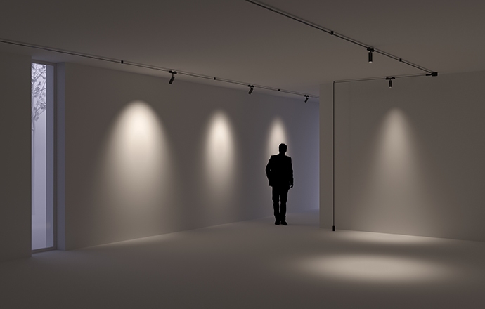 Светильник ART-INBELT-SPOT-R45. Мощность 7Вт, св. поток 579 лм-678 лм, 82-97лм/Вт, изменяемая цветовая температура 2700-6500 К, CRI>92, угол 25°, напряжение питания 48 В. Черный фигурный корпус из алюминия, экран поликарбонат. Степень защиты IP20.