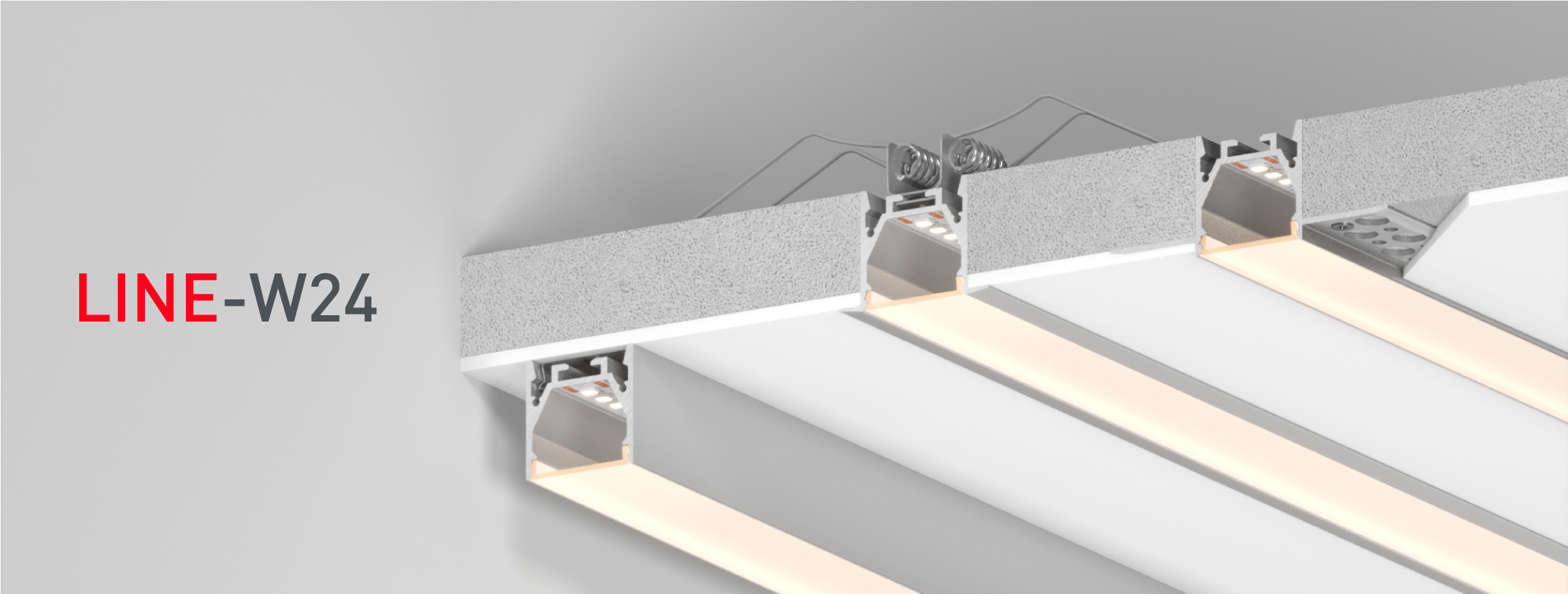 Серия профилей с шириной световой линии 23,5 мм и различными вариантам монтажа.