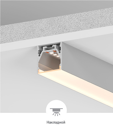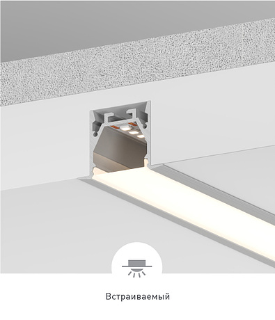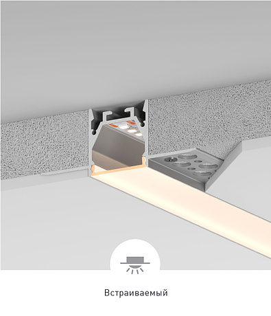 Алюминиевый анодированный профиль для светодиодных лент и линеек. Скрытая установка (под строительную отделку). Цвет - серебристый. Габаритные размеры (L×W×H): 2000x65x25 мм. Ширина площадки для ленты 12,8 мм. Экраны, заглушки и другие аксессуары приобретаются отдельно. Цена за 1 метр.