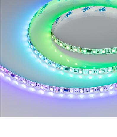 Плотность светодиодов на ленте составляет 72 шт/м. Тип светодиодов — RGB SMD 5060.