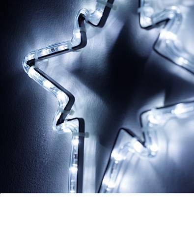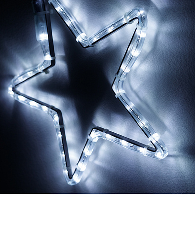 Двухмерные фигуры «Звездочка» из дюралайта помогут создать праздничное настроение в интерьере кафе или магазинов, а также на фасадах зданий и верандах под навесом.